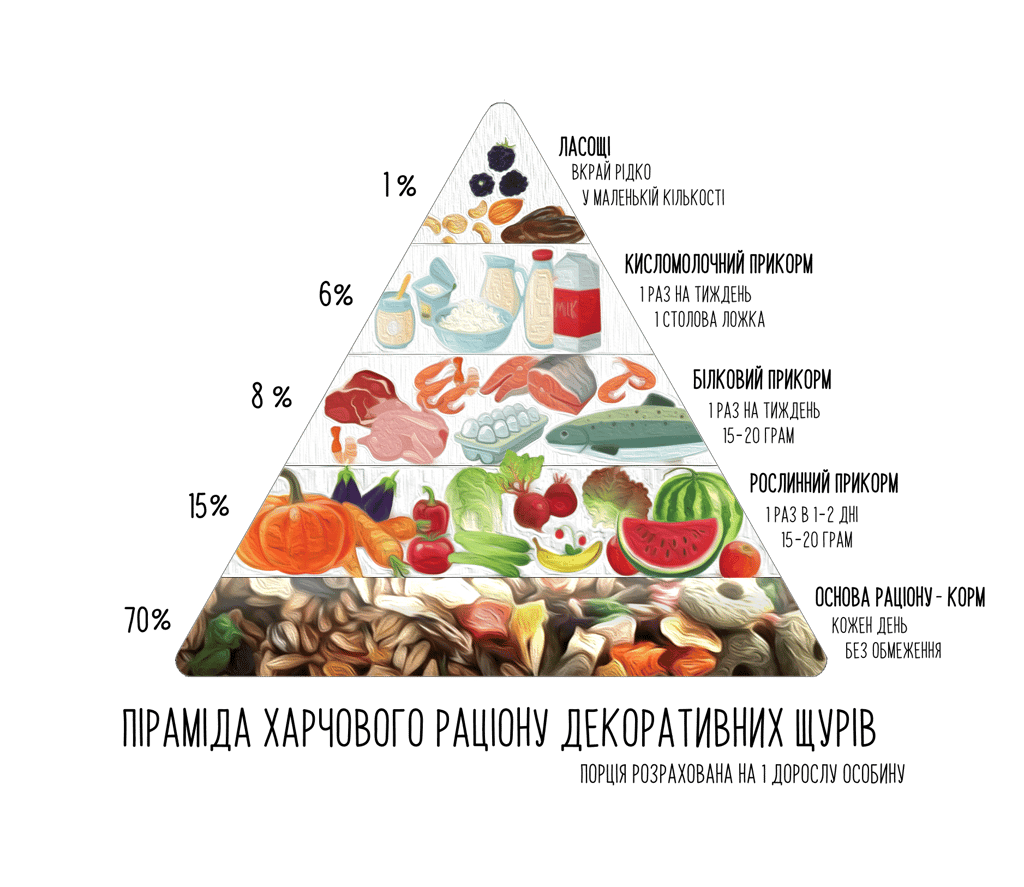 Ця піраміда допоможе вам зорієнтуватися у відсотковому співвідношенні їжі в раціоні декоративного пацюка 🐭🥦