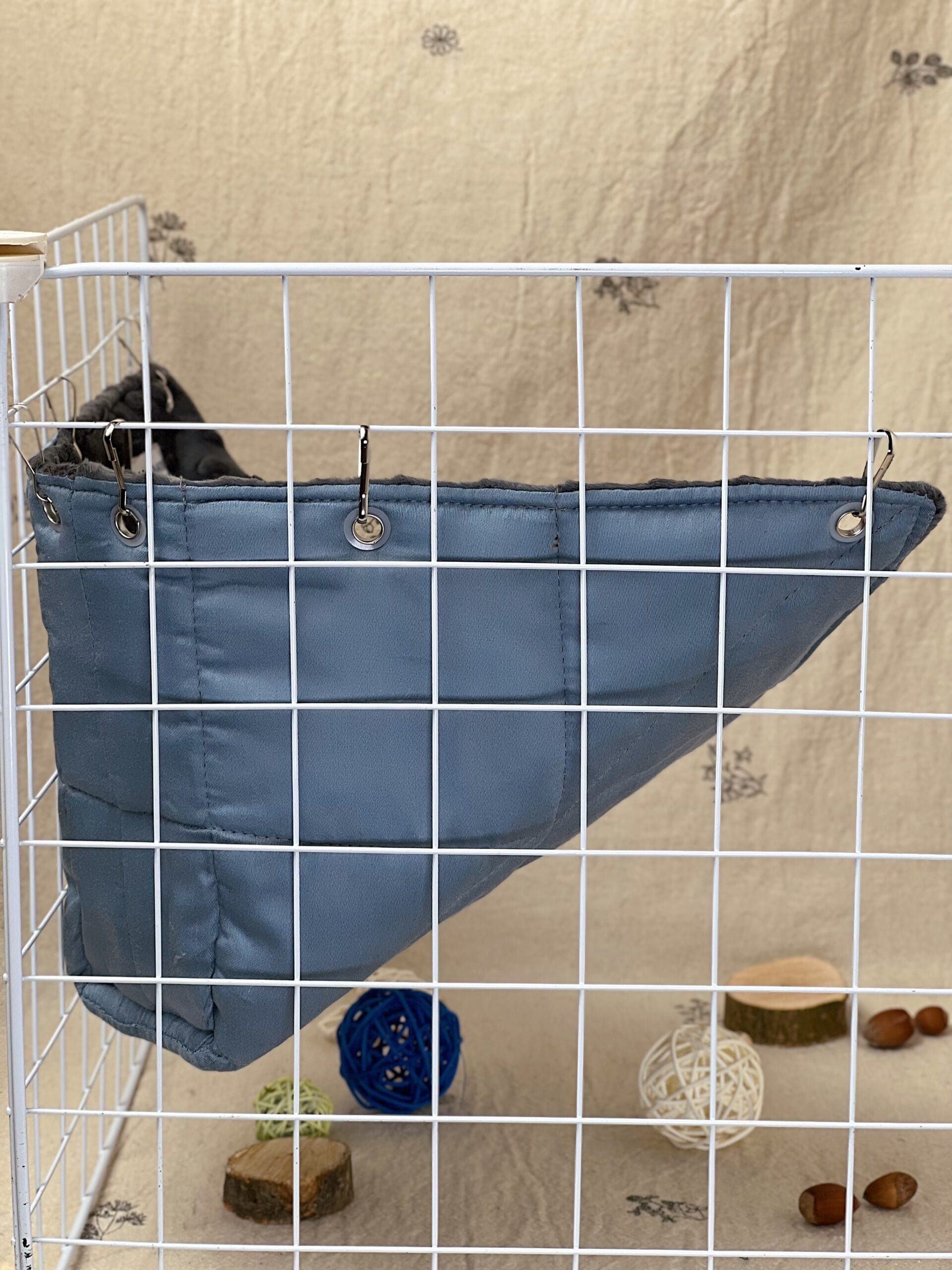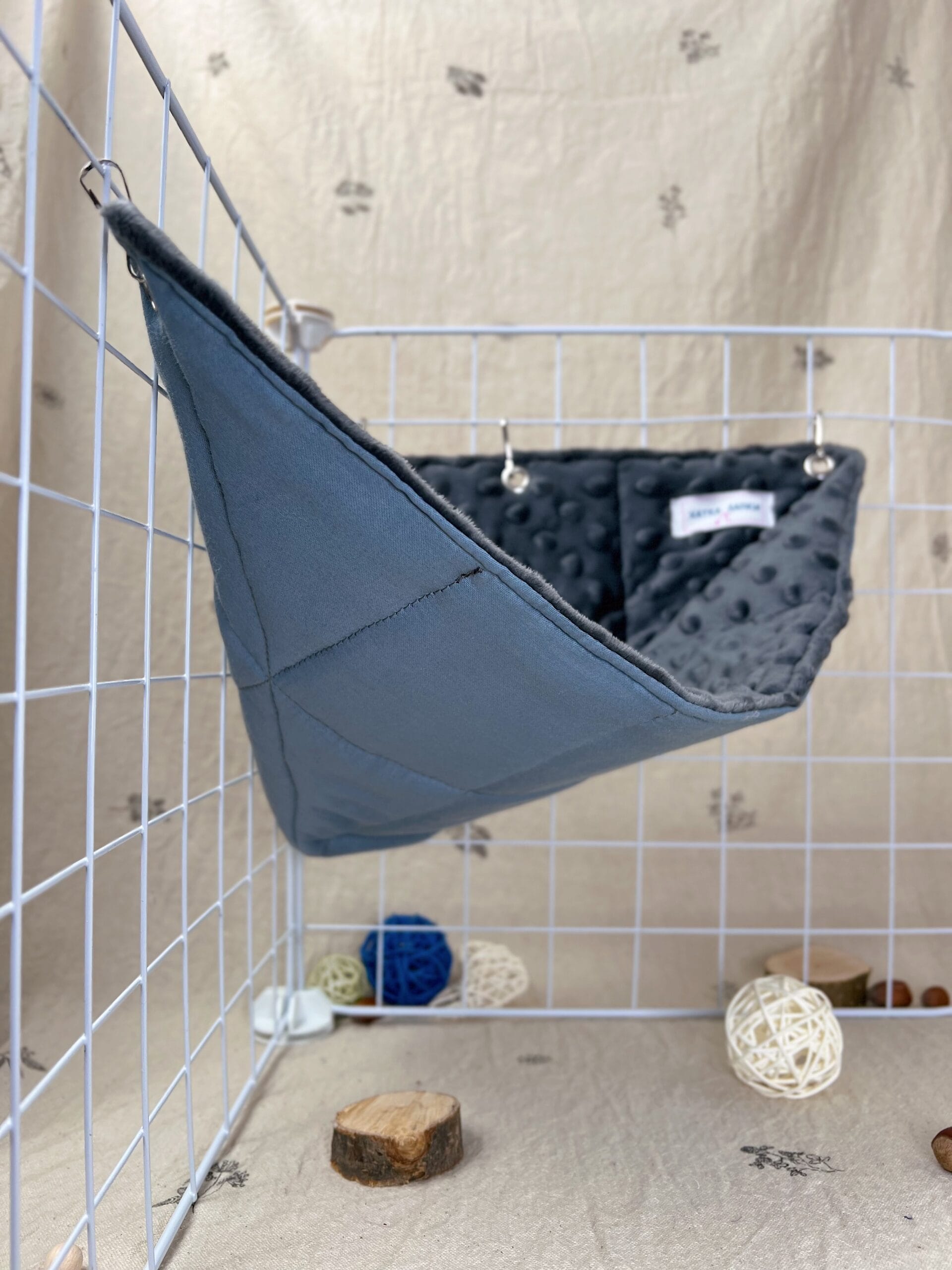 Кутовий гамачок стане чудовим доповненням до клітки, створюючи затишний куточок для відпочинку. Завдяки компактній формі він не займає багато місця, але при цьому залишається зручним і просторим для хвостиків. Пацючки можуть використовувати його як лежанку або додатковий рівень для пересування.