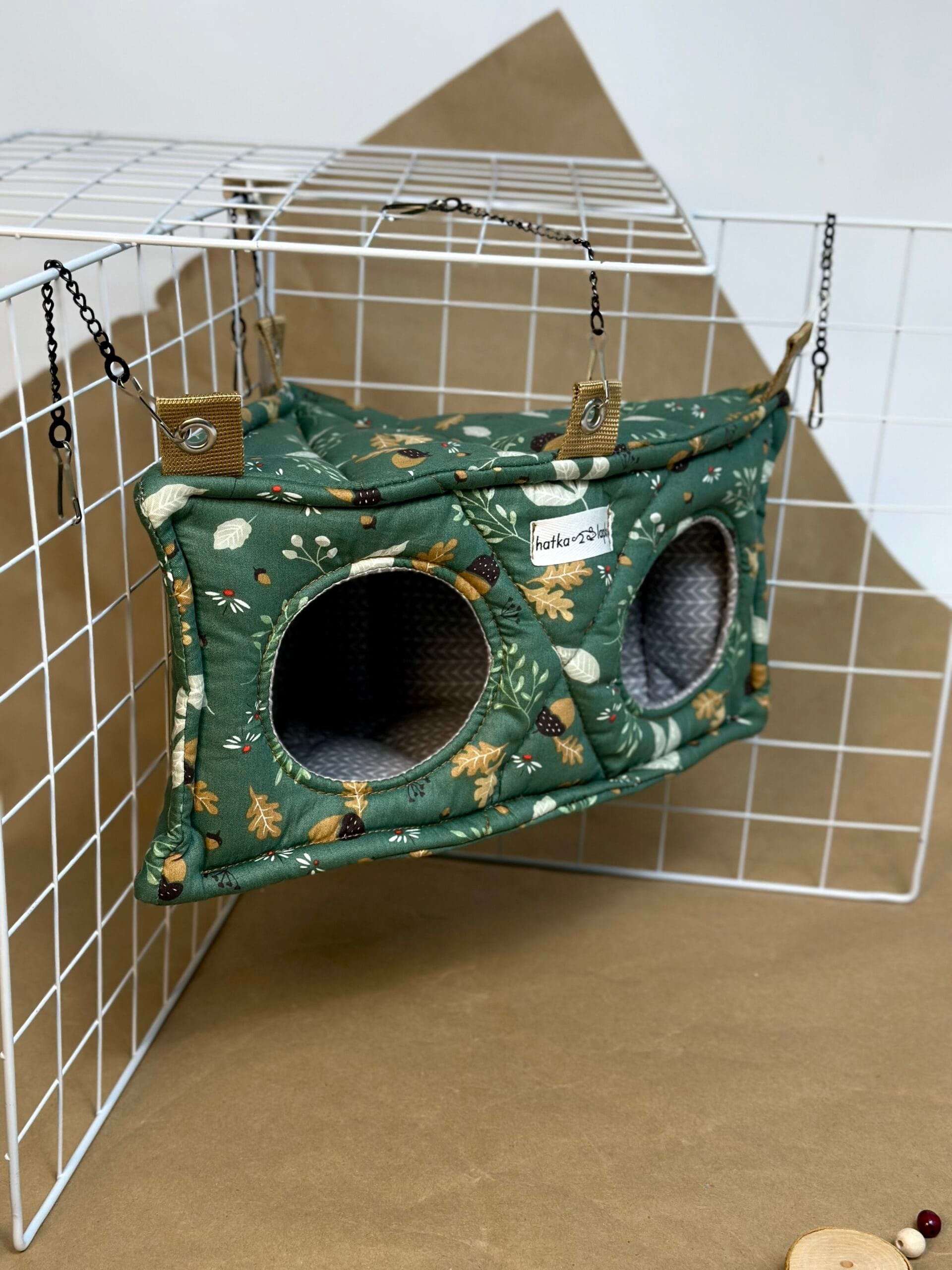 Її зручна форма дозволяє раціонально використовувати простір у клітці, створюючи затишне місце для сну та відпочинку. Два входи забезпечують додатковий комфорт, дозволяючи пацючкам легко пересуватись і почуватися в безпеці.
