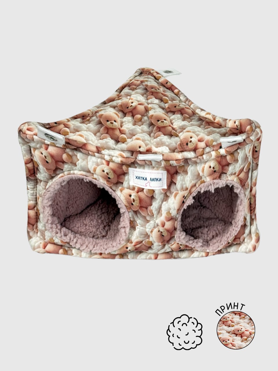 Її зручна форма дозволяє раціонально використовувати простір у клітці, створюючи затишне місце для сну та відпочинку. Два входи забезпечують додатковий комфорт, дозволяючи пацючкам легко пересуватись і почуватися в безпеці.