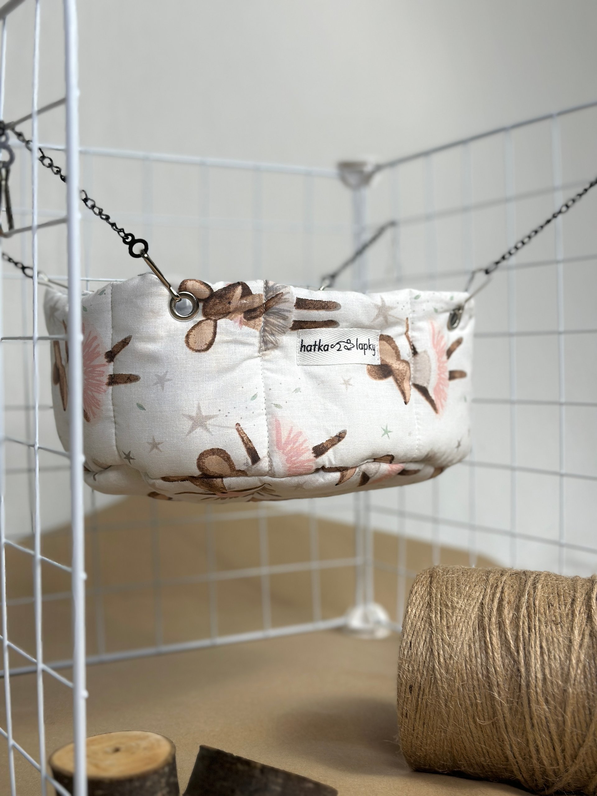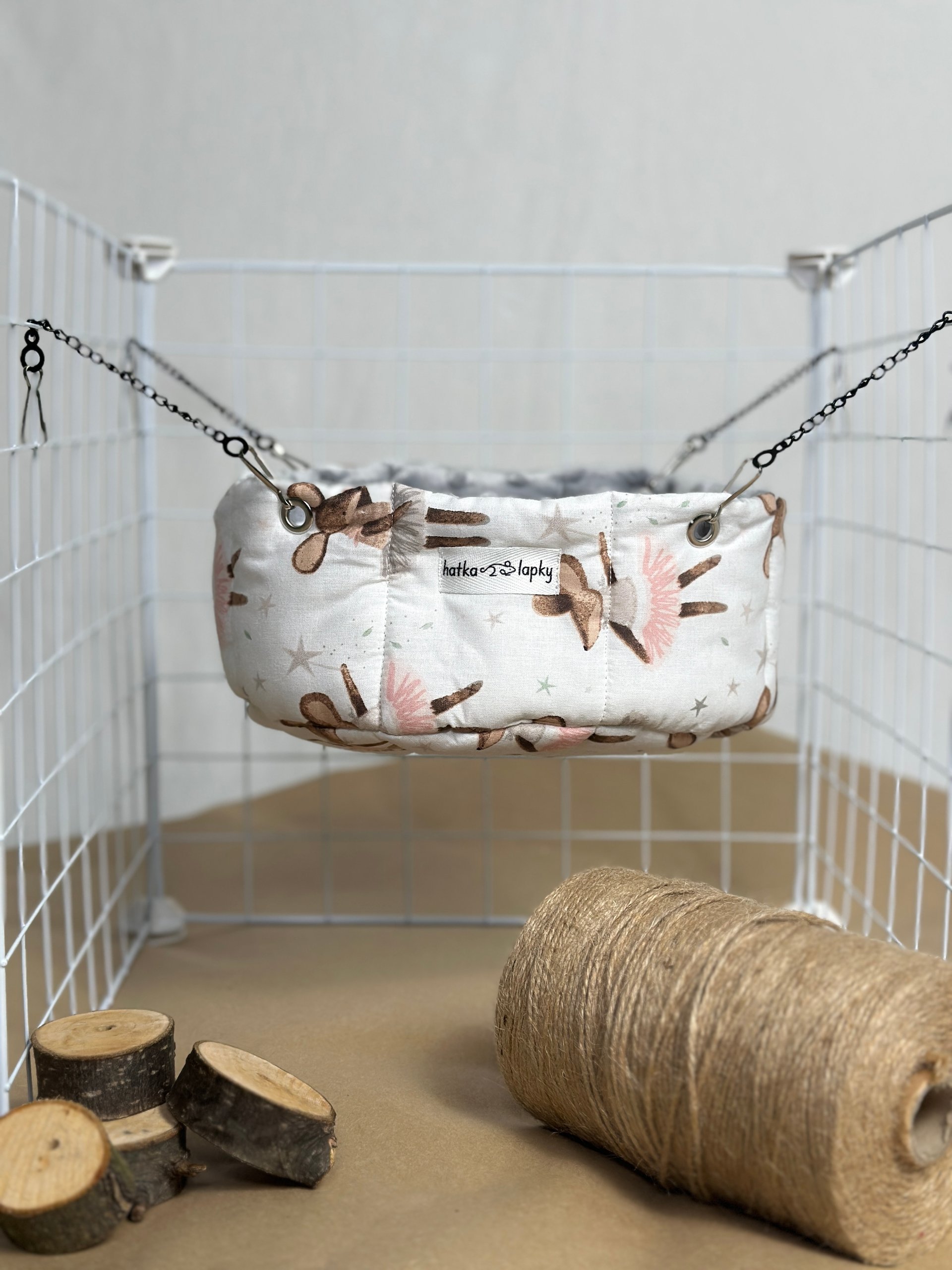 Його легко закріпити у клітці завдяки зручним кріпленням, а компактний розмір дозволяє розмістити гамачок у будь-якому місці клітки 🏠