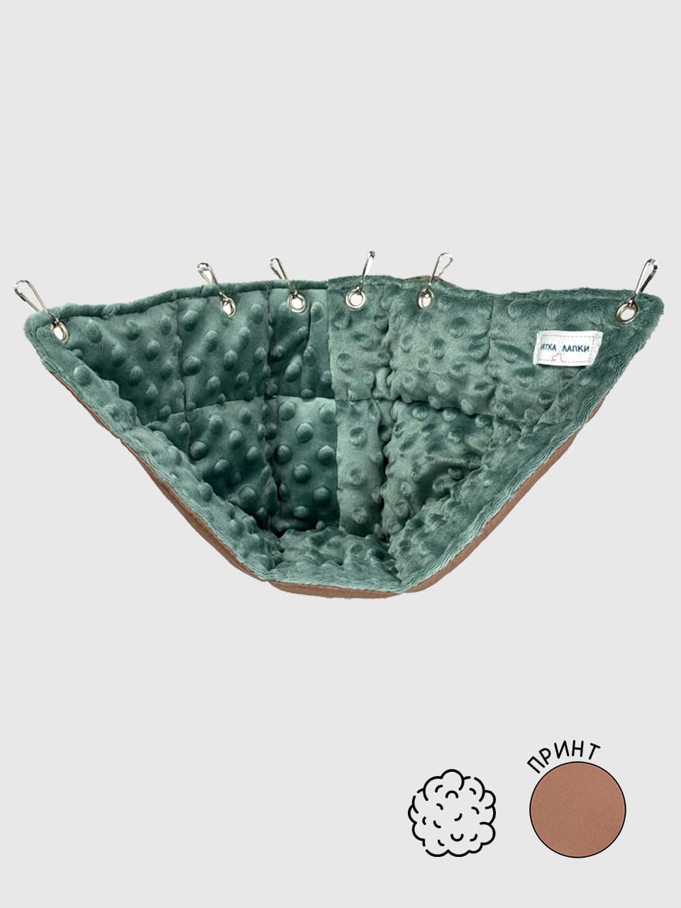 Міцні кріплення забезпечують надійну фіксацію, тому гамачок не провисає та витримує кілька хвостиків одночасно. Він виготовлений із приємних на дотик, дихаючих матеріалів, які легко прати та доглядати. А ще в ньому так зручно влаштовувати спільні обіймашки та довгі смачні перекуси!