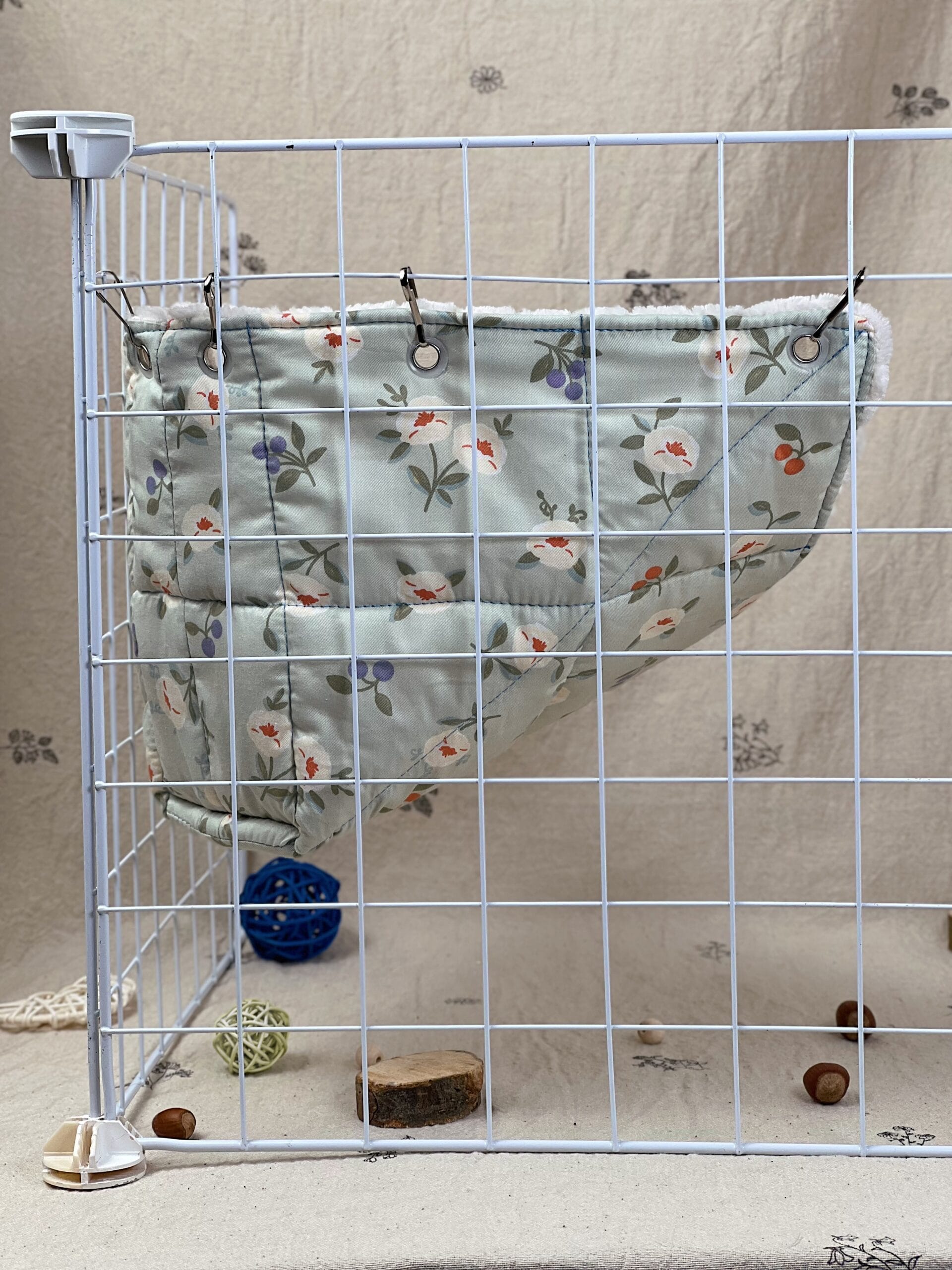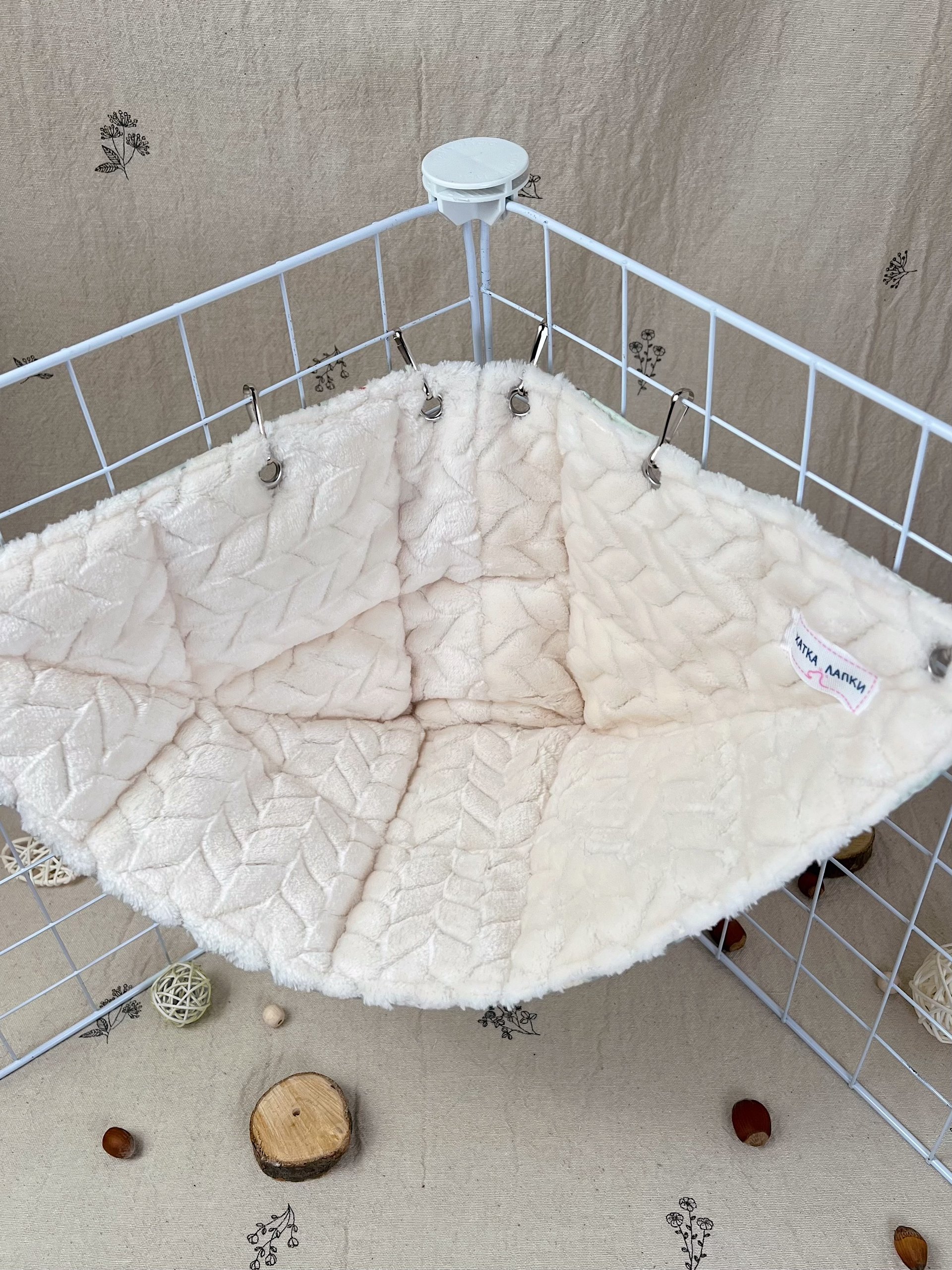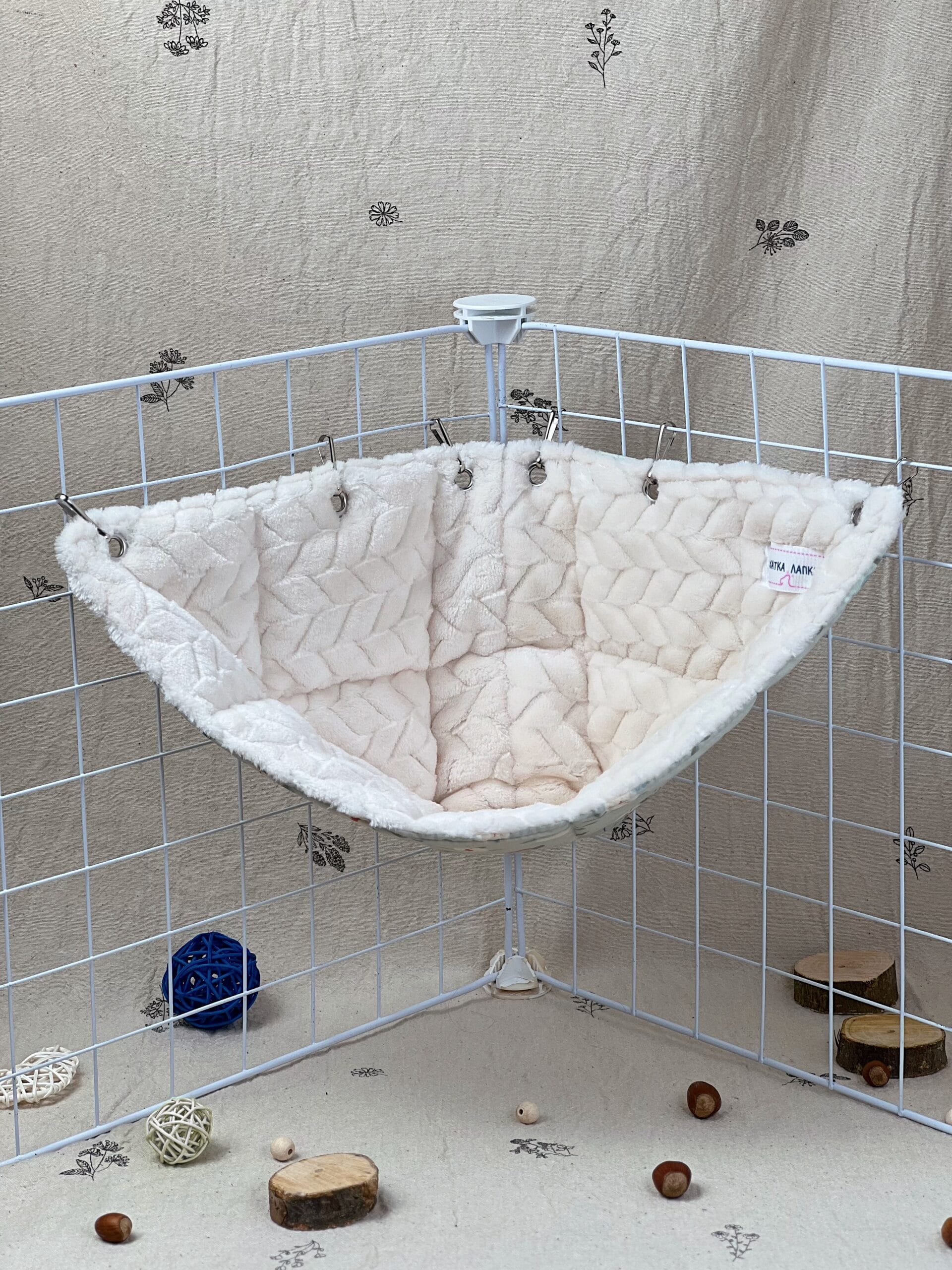 Кутовий гамачок стане чудовим доповненням до клітки, створюючи затишний куточок для відпочинку. Завдяки компактній формі він не займає багато місця, але при цьому залишається зручним і просторим для хвостиків. Пацючки можуть використовувати його як лежанку або додатковий рівень для пересування.