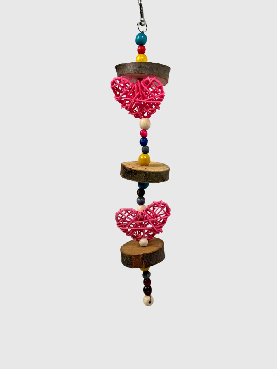 За рахунок натуральних деревʼяних кілець яблуні, деревʼяних бусін та ротангових кульок, іграшка не тільки приваблює гострі зубки гризунів, а й створює атмосферу затишку та краси в клітці ваших малюків ✨