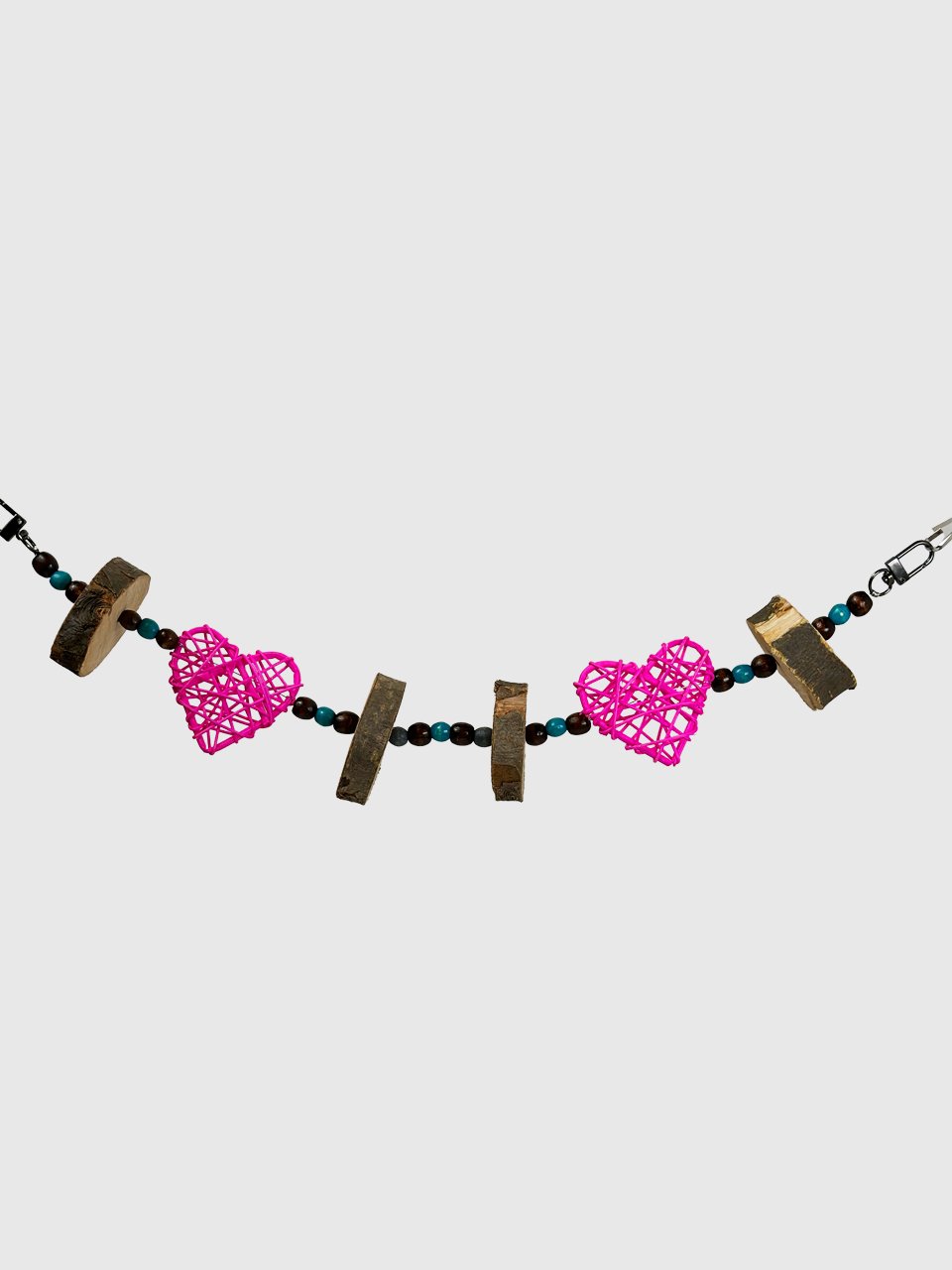 За рахунок натуральних деревʼяних кілець яблуні, деревʼяних бусін та ротангових кульок, іграшка не тільки приваблює гострі зубки гризунів, а й створює атмосферу затишку та краси в клітці ваших малюків ✨