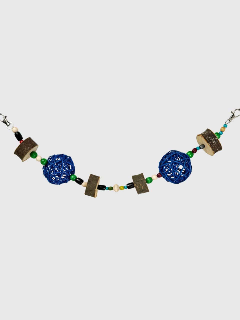 За рахунок натуральних деревʼяних кілець яблуні, деревʼяних бусін та ротангових кульок, іграшка не тільки приваблює гострі зубки гризунів, а й створює атмосферу затишку та краси в клітці ваших малюків ✨