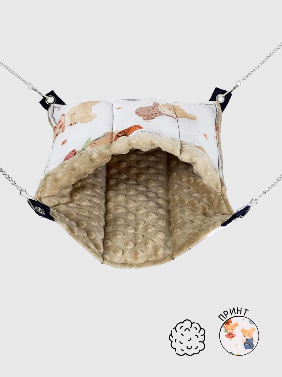 Завдяки унікальному дизайну, він легко трансформується: гризунята можуть відпочивати на ньому зверху або ж загортатися всередині у м’яку ковдру 🛌