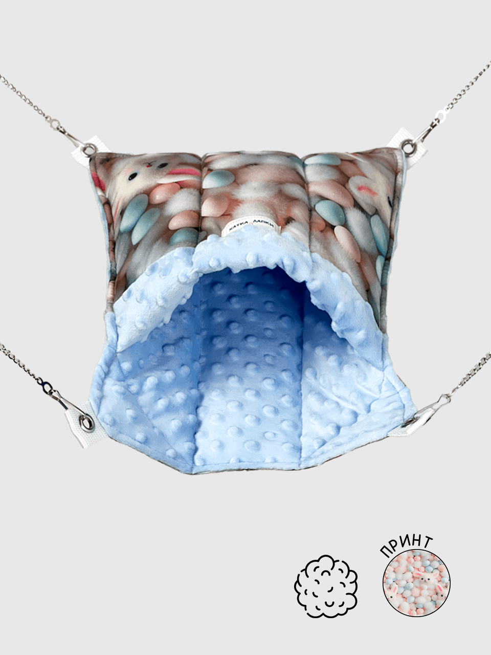 Завдяки унікальному дизайну, він легко трансформується: гризунята можуть відпочивати на ньому зверху або ж загортатися всередині у м’яку ковдру 🛌