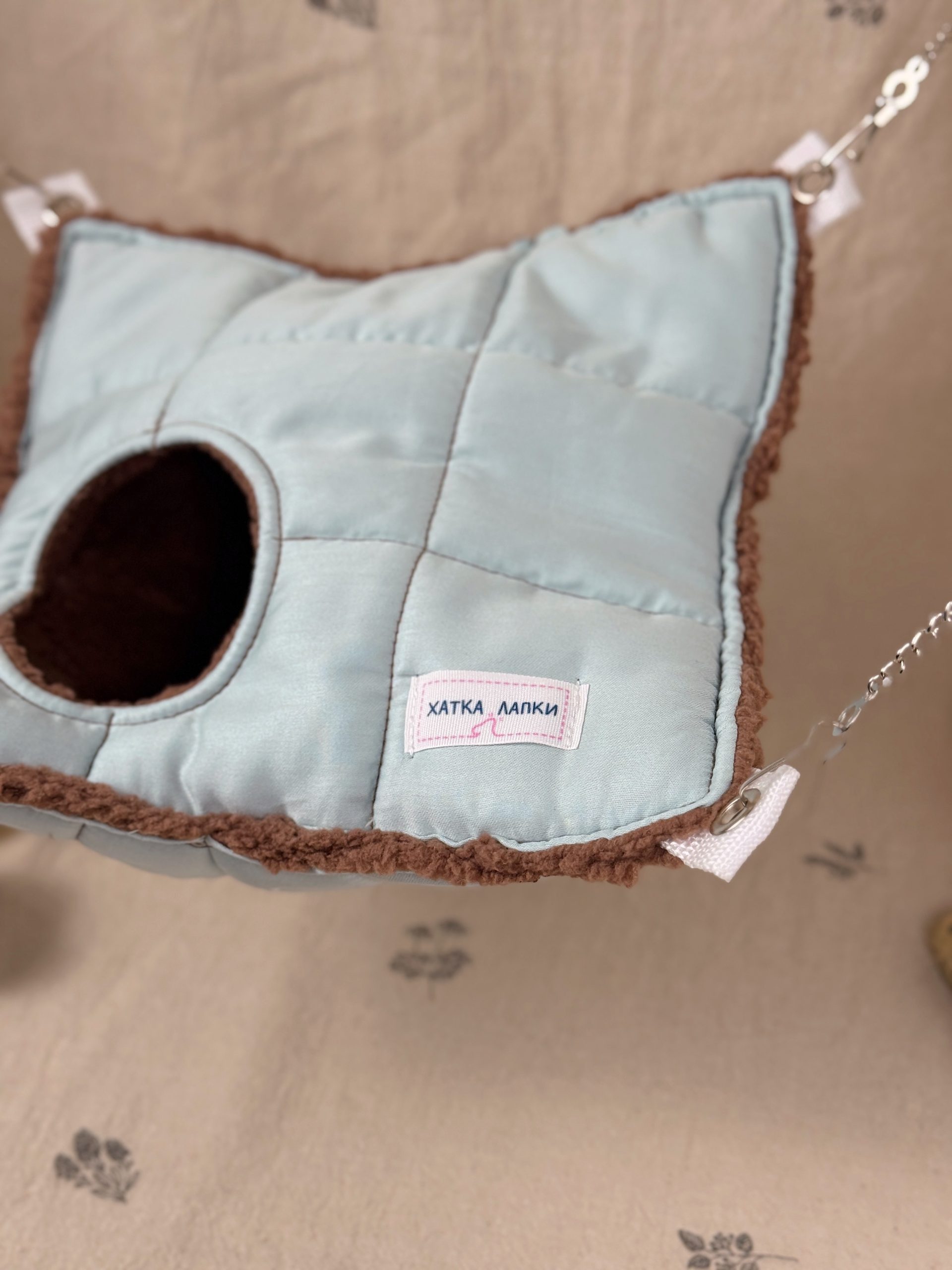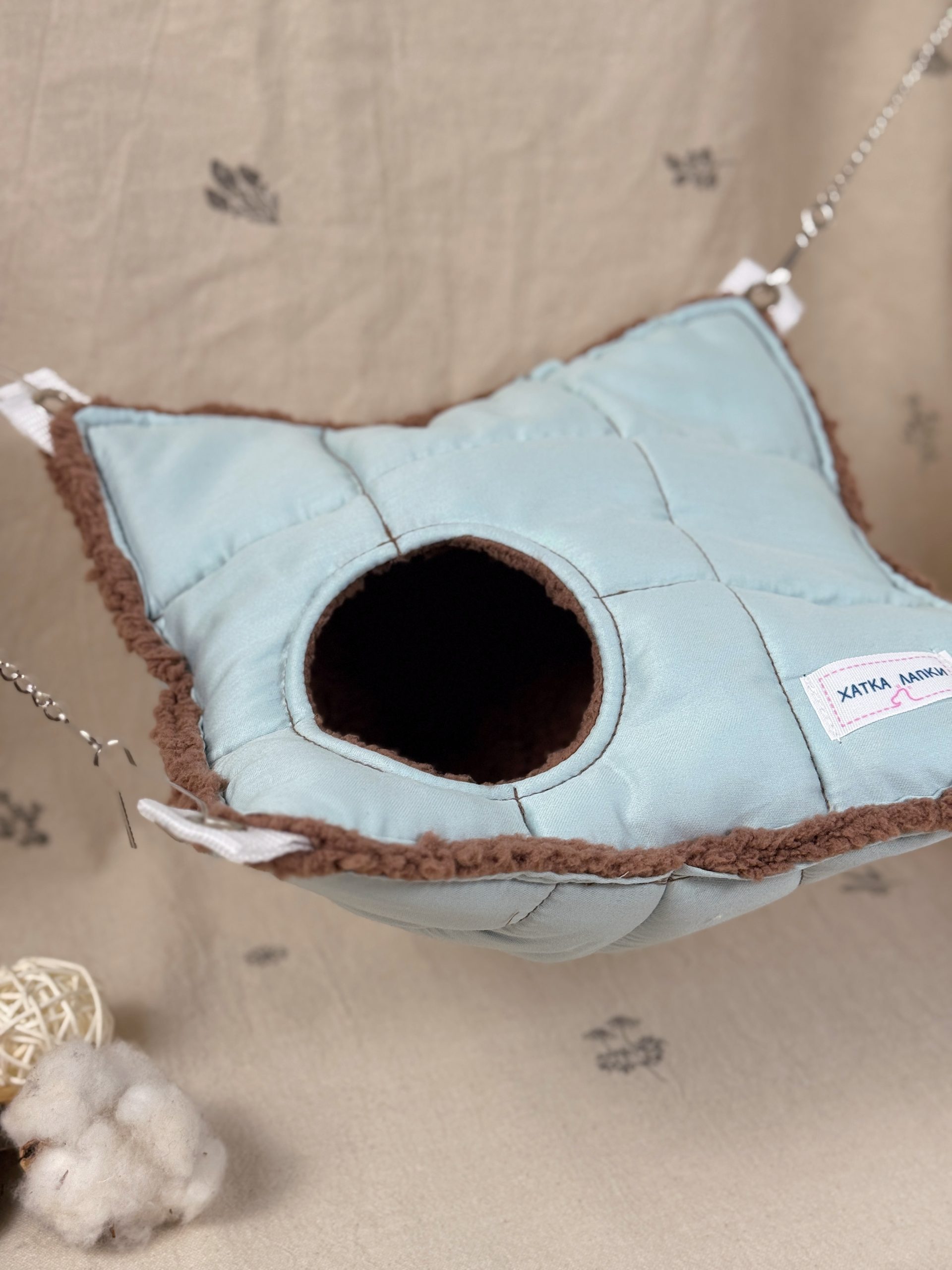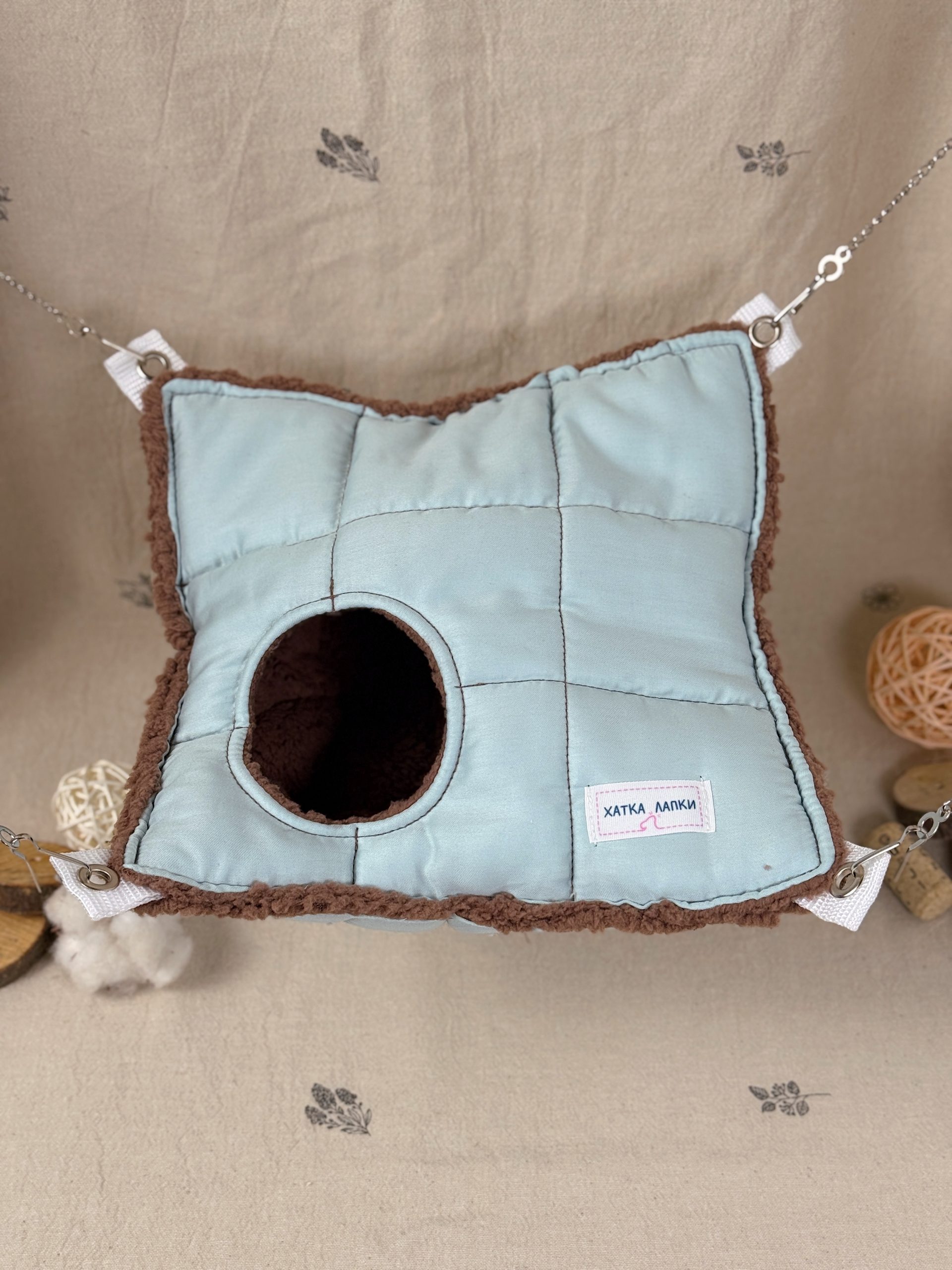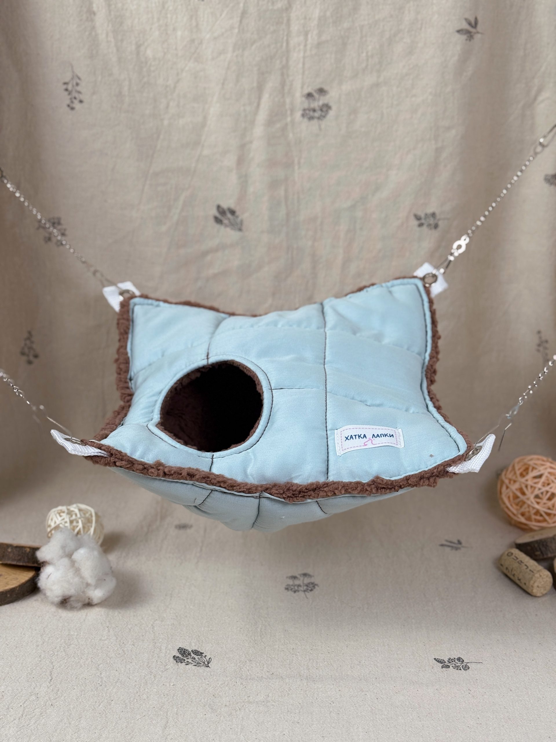 А міцні ланцюжки та карабіни допоможуть розташувати гамачок у будь-яку частину клітки ваших малюків.