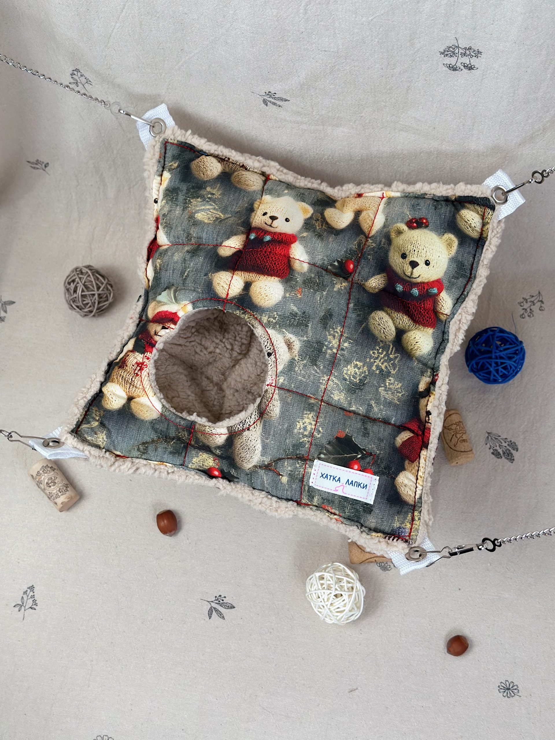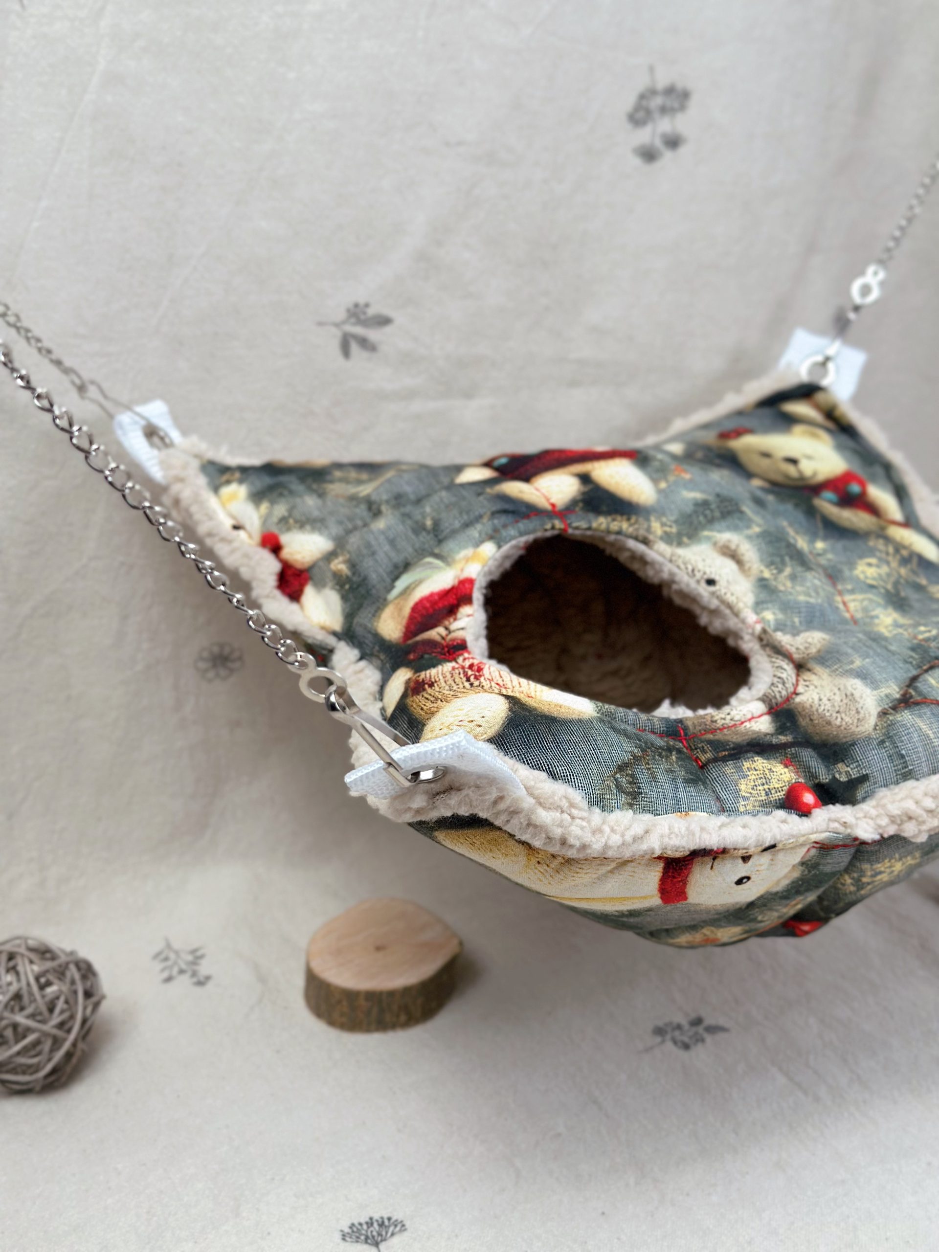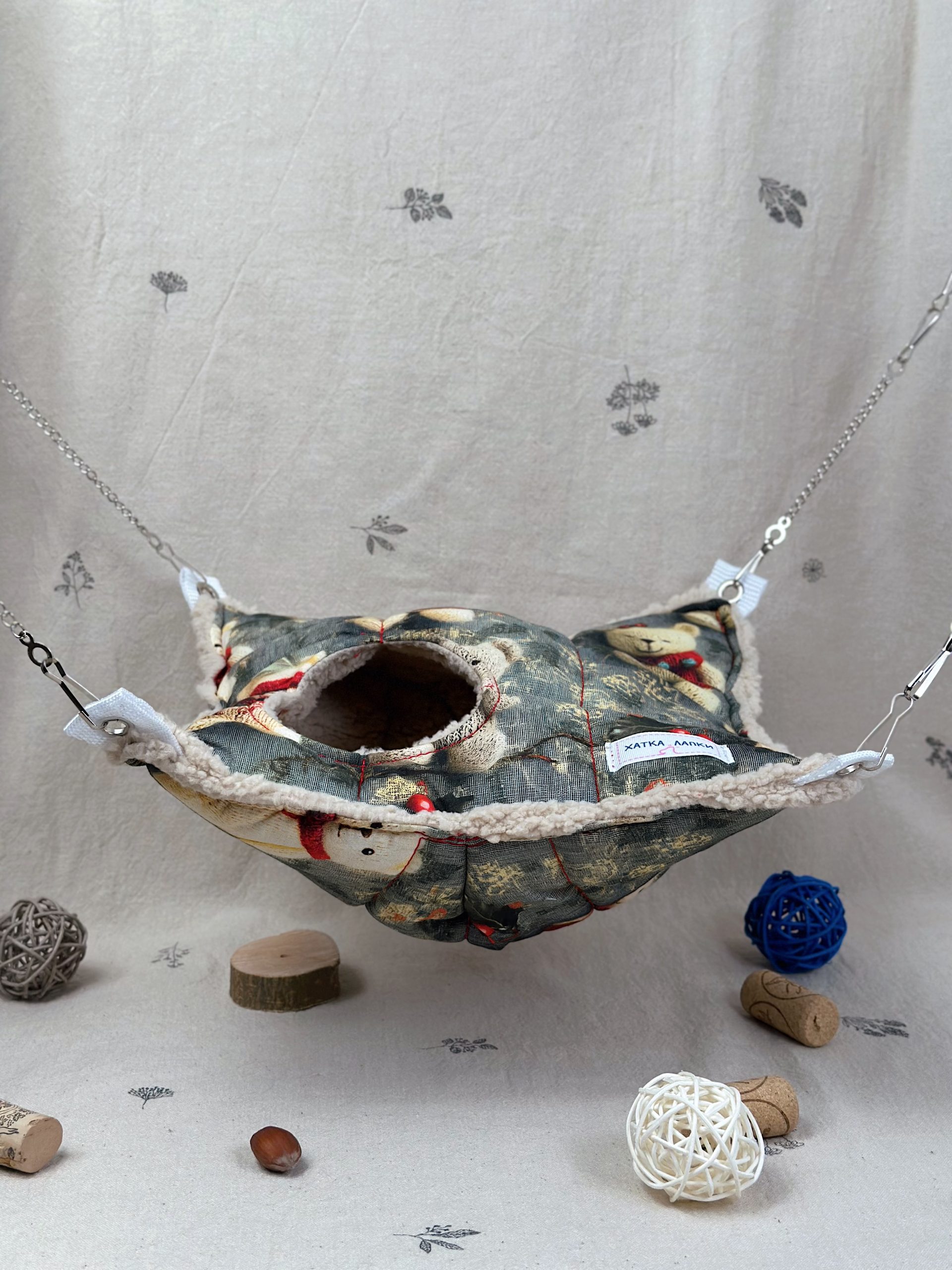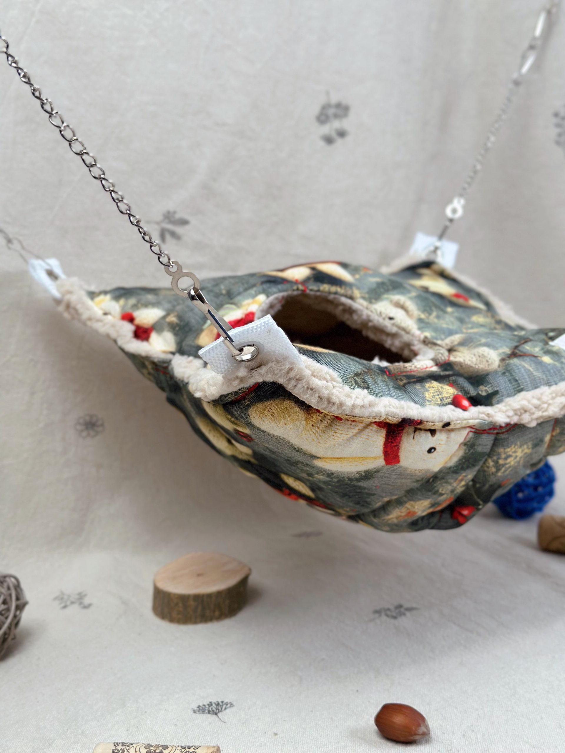 А міцні ланцюжки та карабіни допоможуть розташувати гамачок у будь-яку частину клітки ваших малюків.