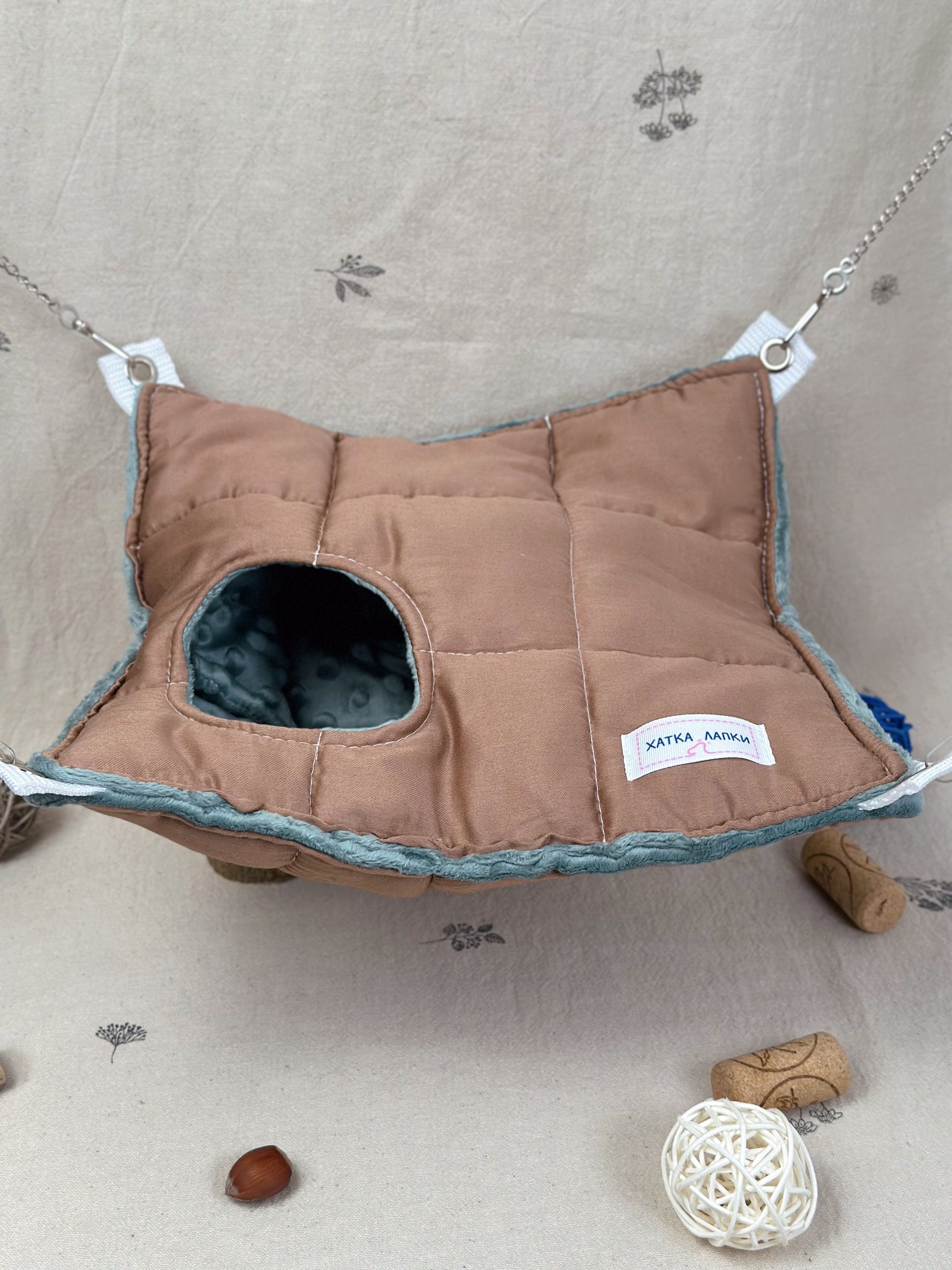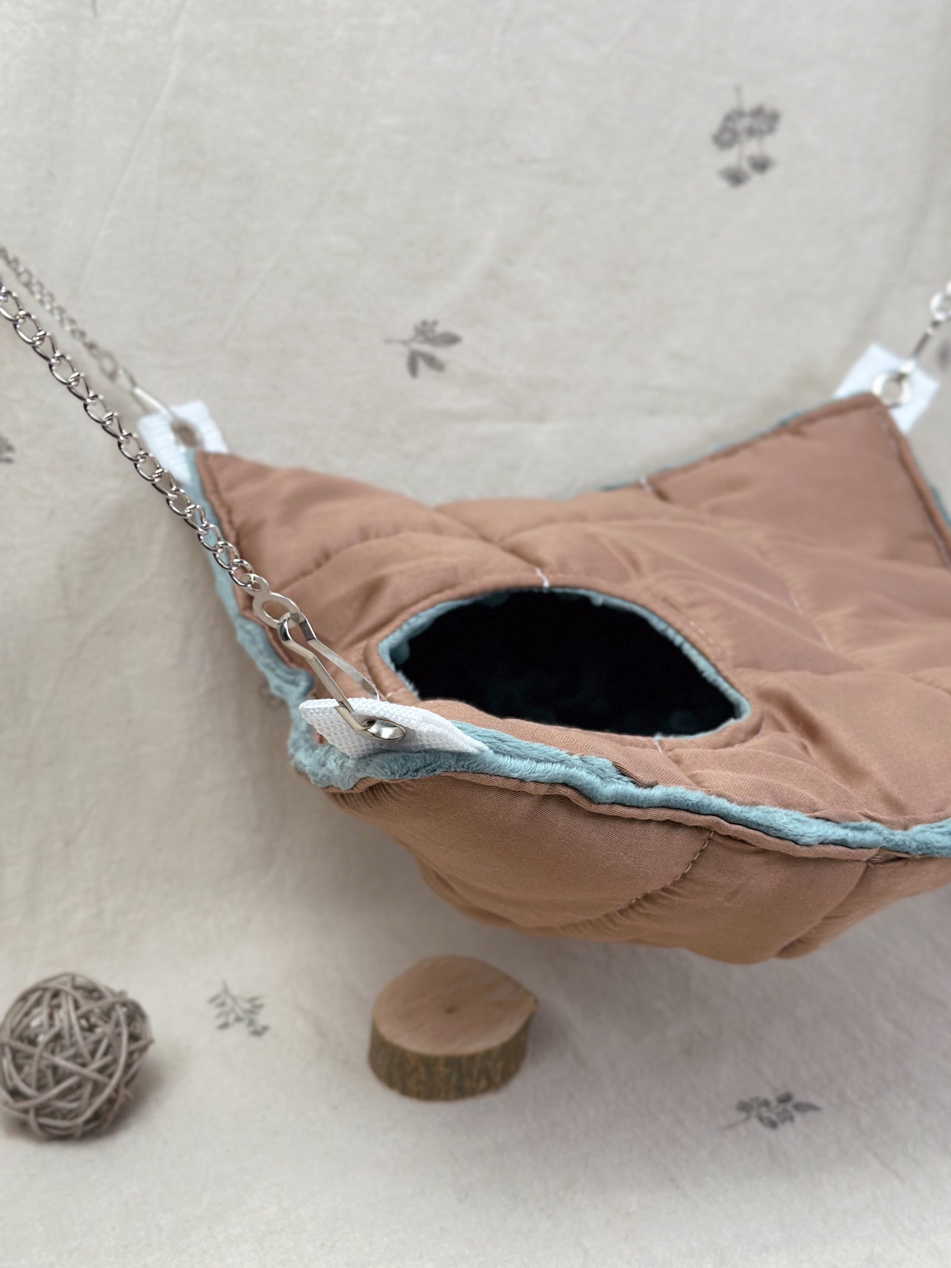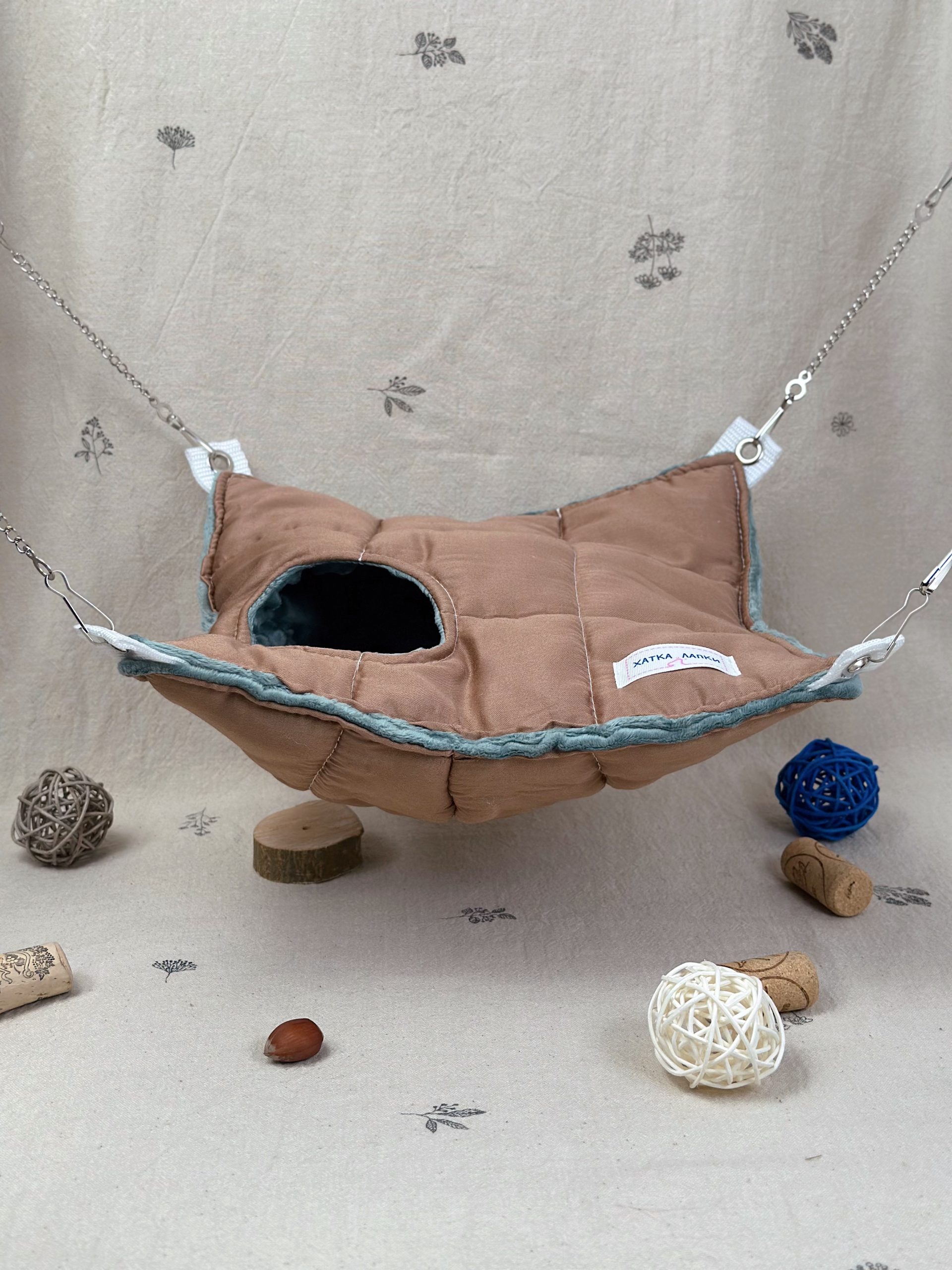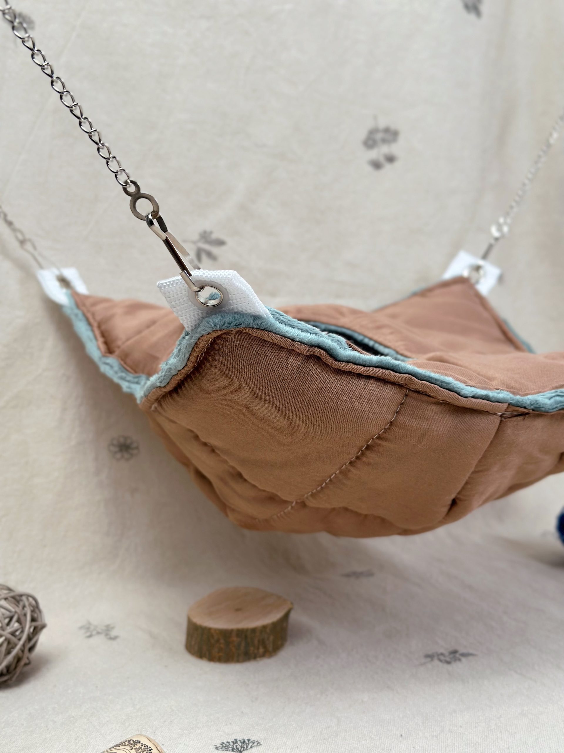 А міцні ланцюжки та карабіни допоможуть розташувати гамачок у будь-яку частину клітки ваших малюків.