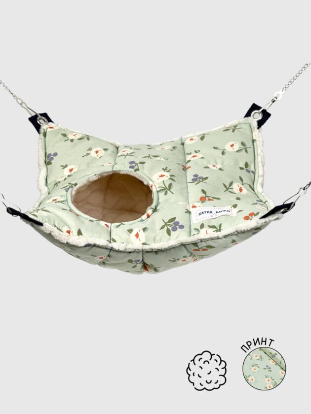А міцні ланцюжки та карабіни допоможуть розташувати гамачок у будь-яку частину клітки ваших малюків.