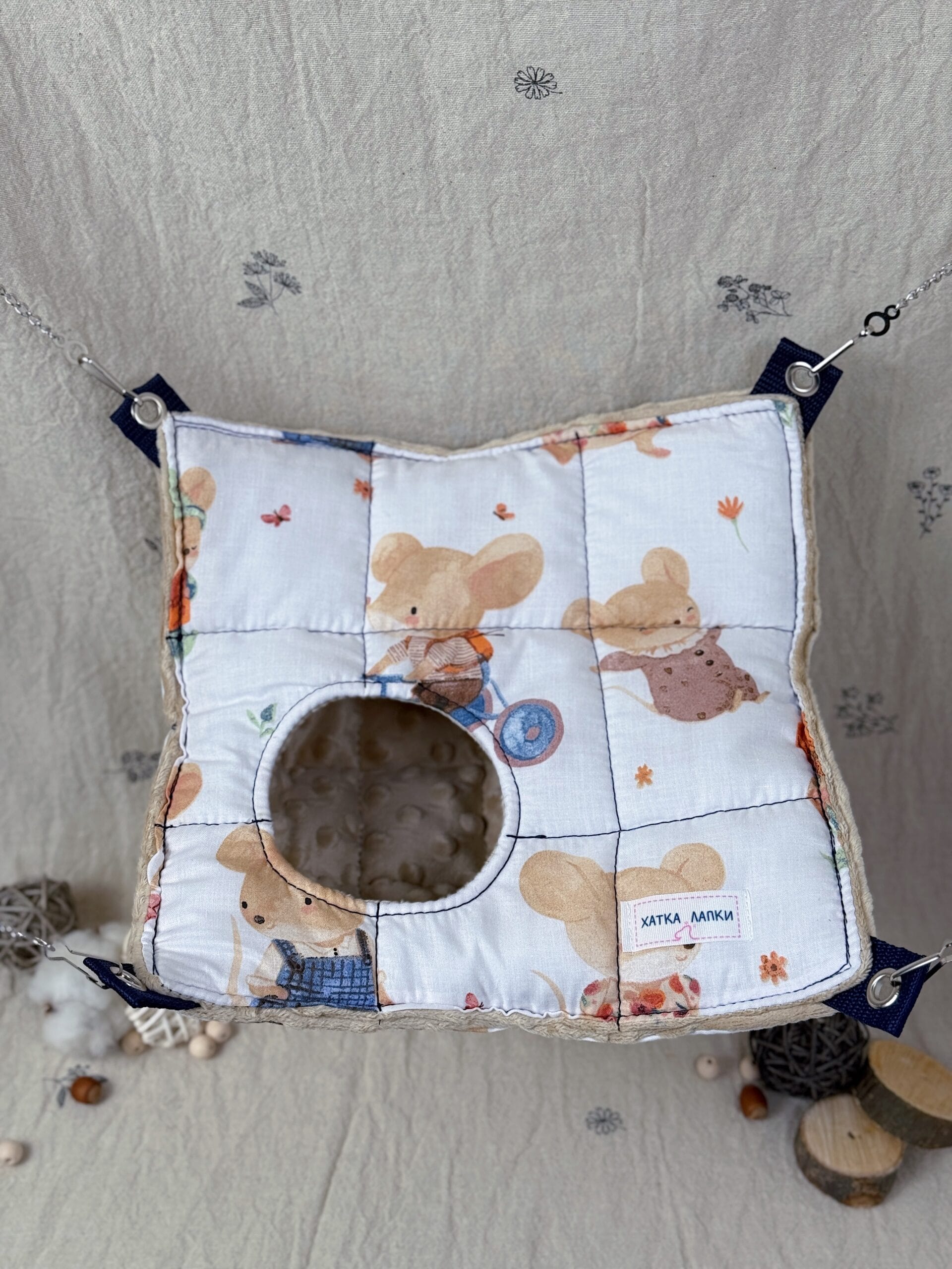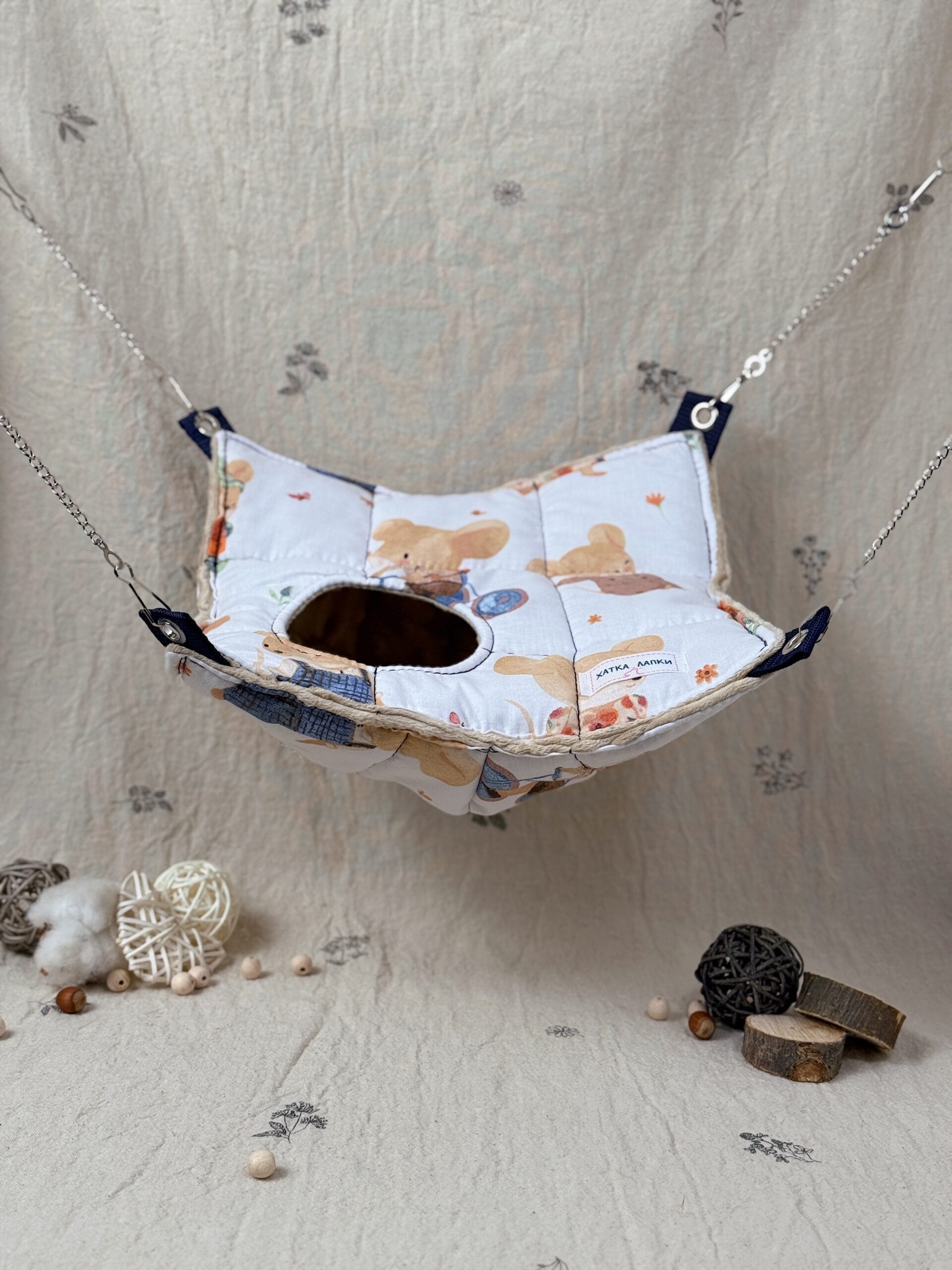 А міцні ланцюжки та карабіни допоможуть розташувати гамачок у будь-яку частину клітки ваших малюків.