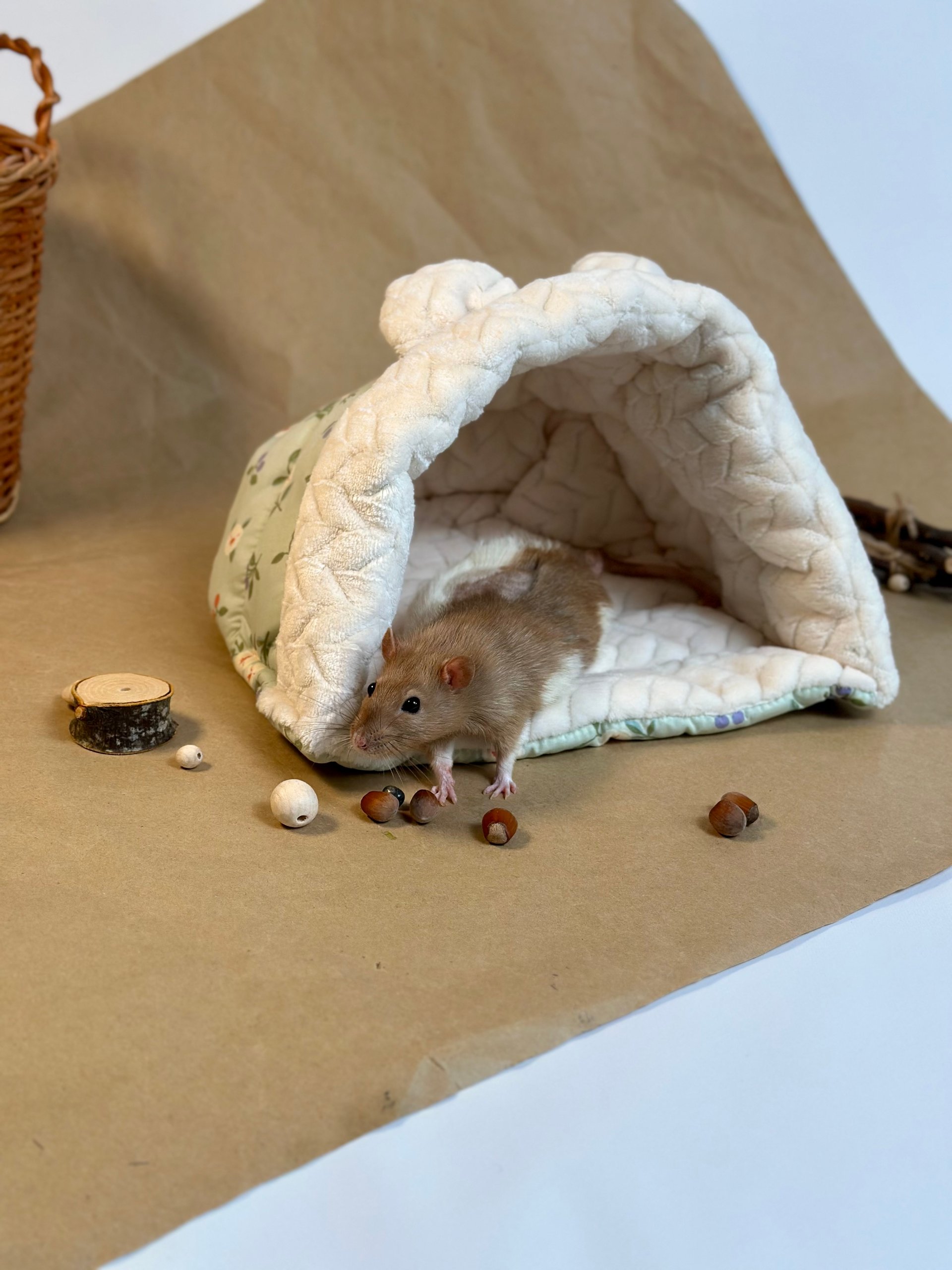 Завдяки м’якому та міцному матеріалу хатинка забезпечує комфорт та довговічність, а її простора конструкція дозволяє малюкам зручно влаштуватися всередині 🐭💖