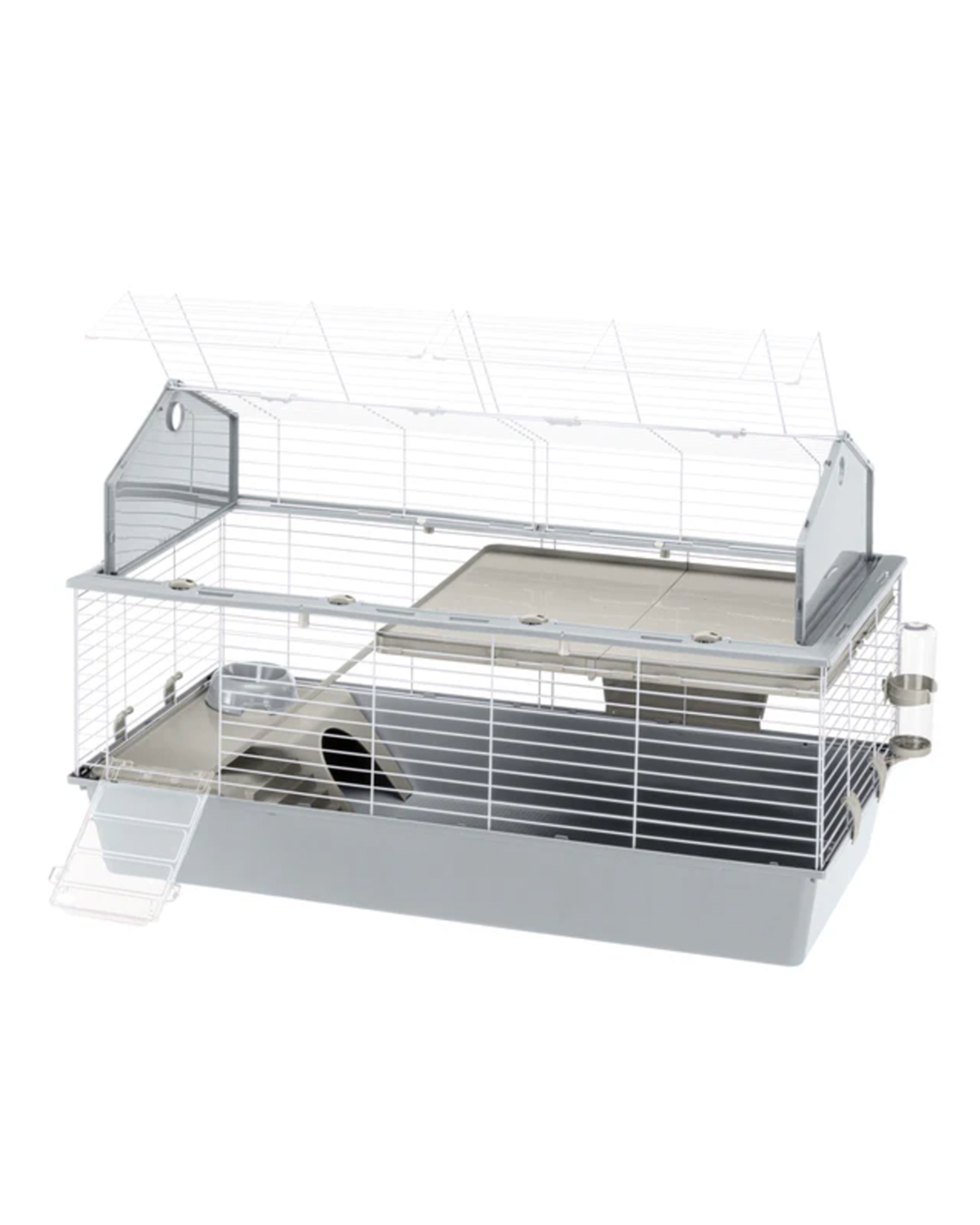 Клітка оснащена трикутним дахом, який можна повністю відкрити для зручного прибирання 🧹