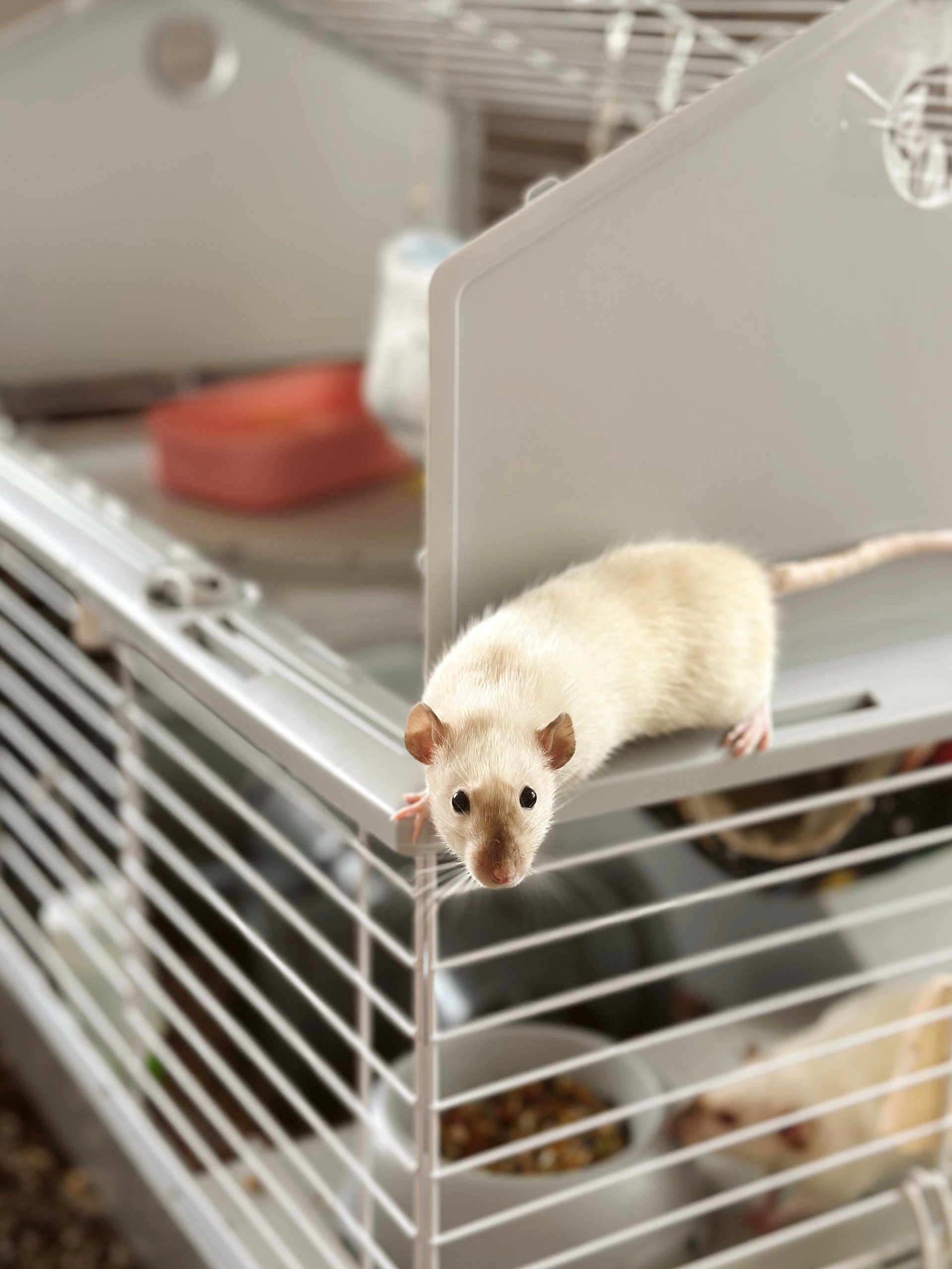 Вона чудово підходить для дорослих пацюків, але якщо ваші пацючки важать менше ніж 350 грамів, клітку рекомендується додатково обгорнути дрібною сіткою для безпеки 👈🏻