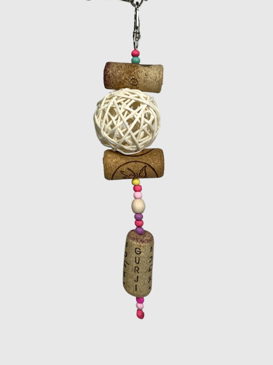 Вона виготовлена з винних корків, деревʼяних бусін та ротангової кульки, що має приємну текстуру та чудово підходить для гризіння 🦷