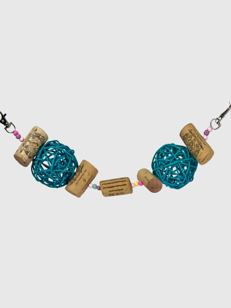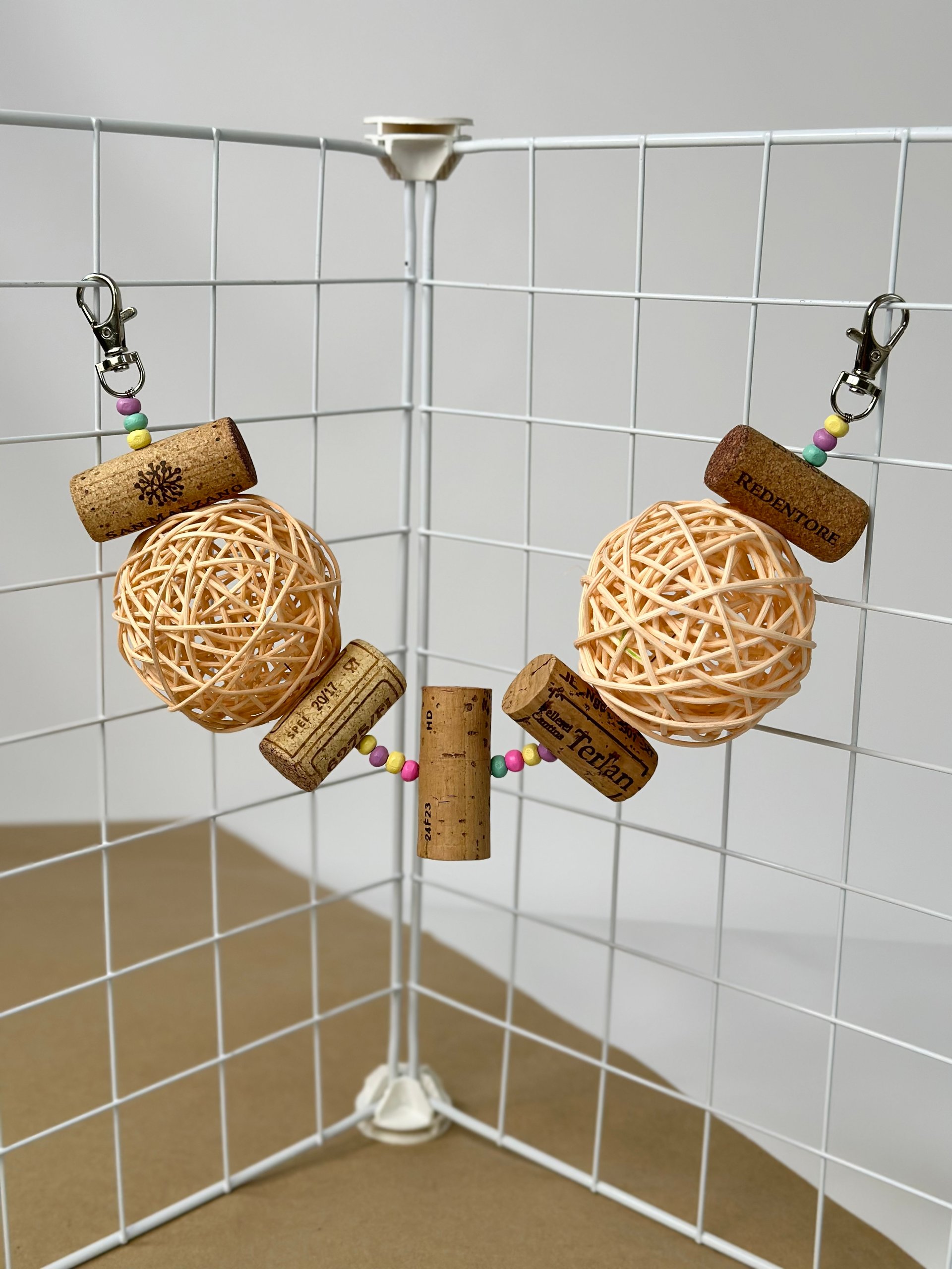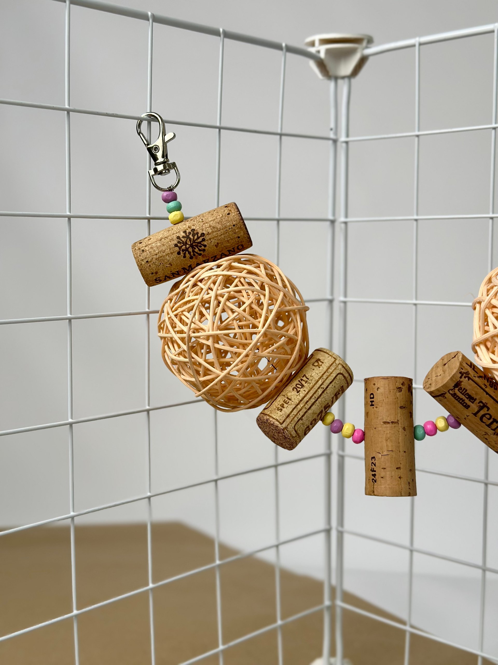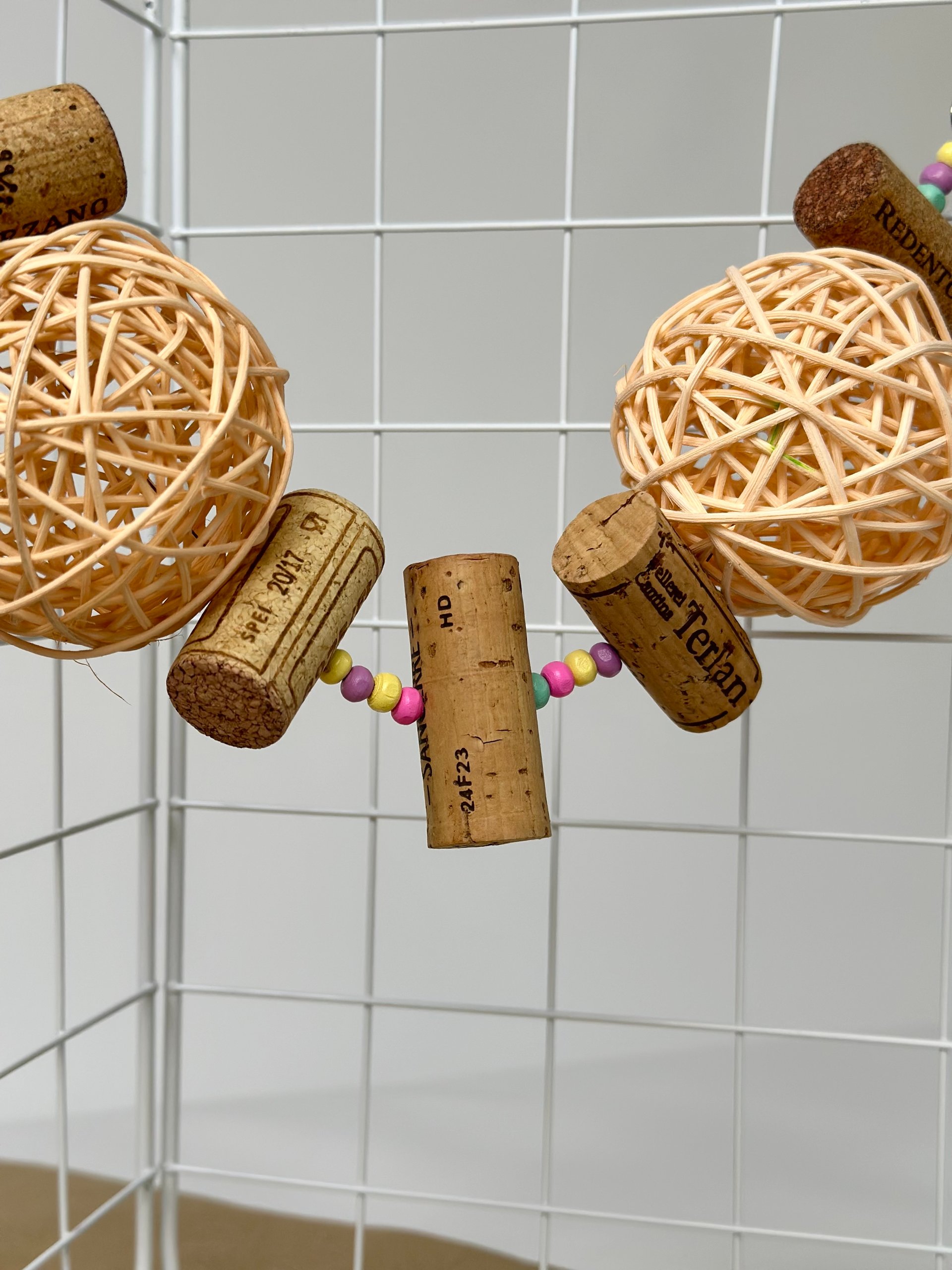Вона виготовлена з винних корків, деревʼяних бусін та ротангової кульки, що має приємну текстуру та чудово підходить для гризіння 🦷