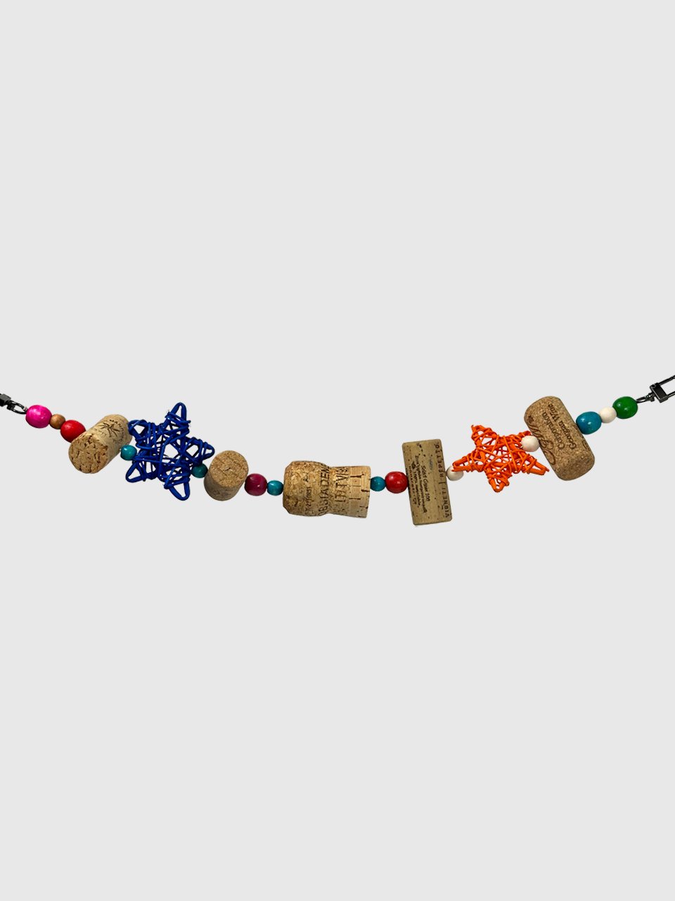 Вона виготовлена з винних корків, деревʼяних бусін та ротангової кульки, що має приємну текстуру та чудово підходить для гризіння 🦷