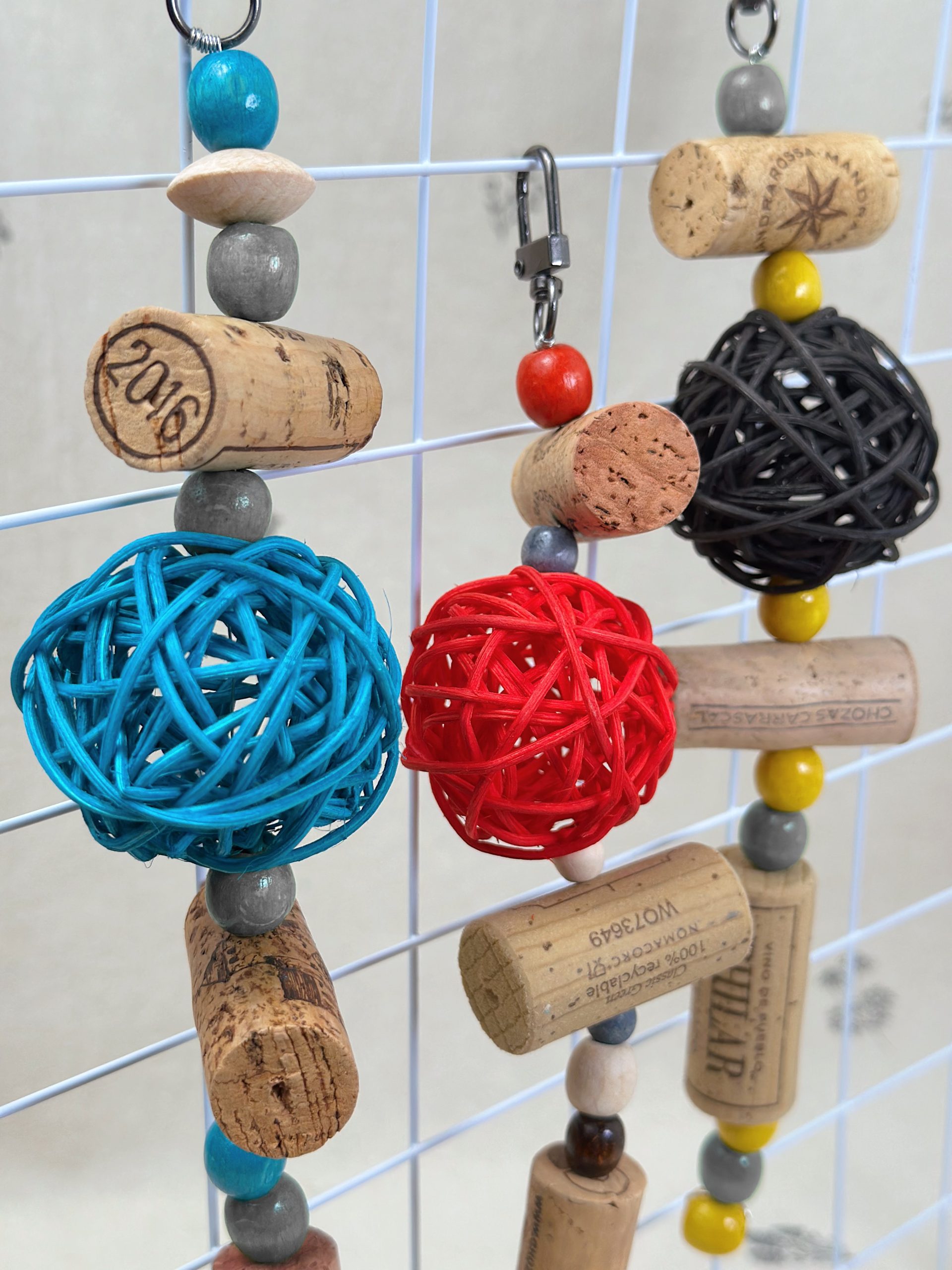 Вона виготовлена з винних корків, деревʼяних бусін та ротангової кульки, що має приємну текстуру та чудово підходить для гризіння 🦷