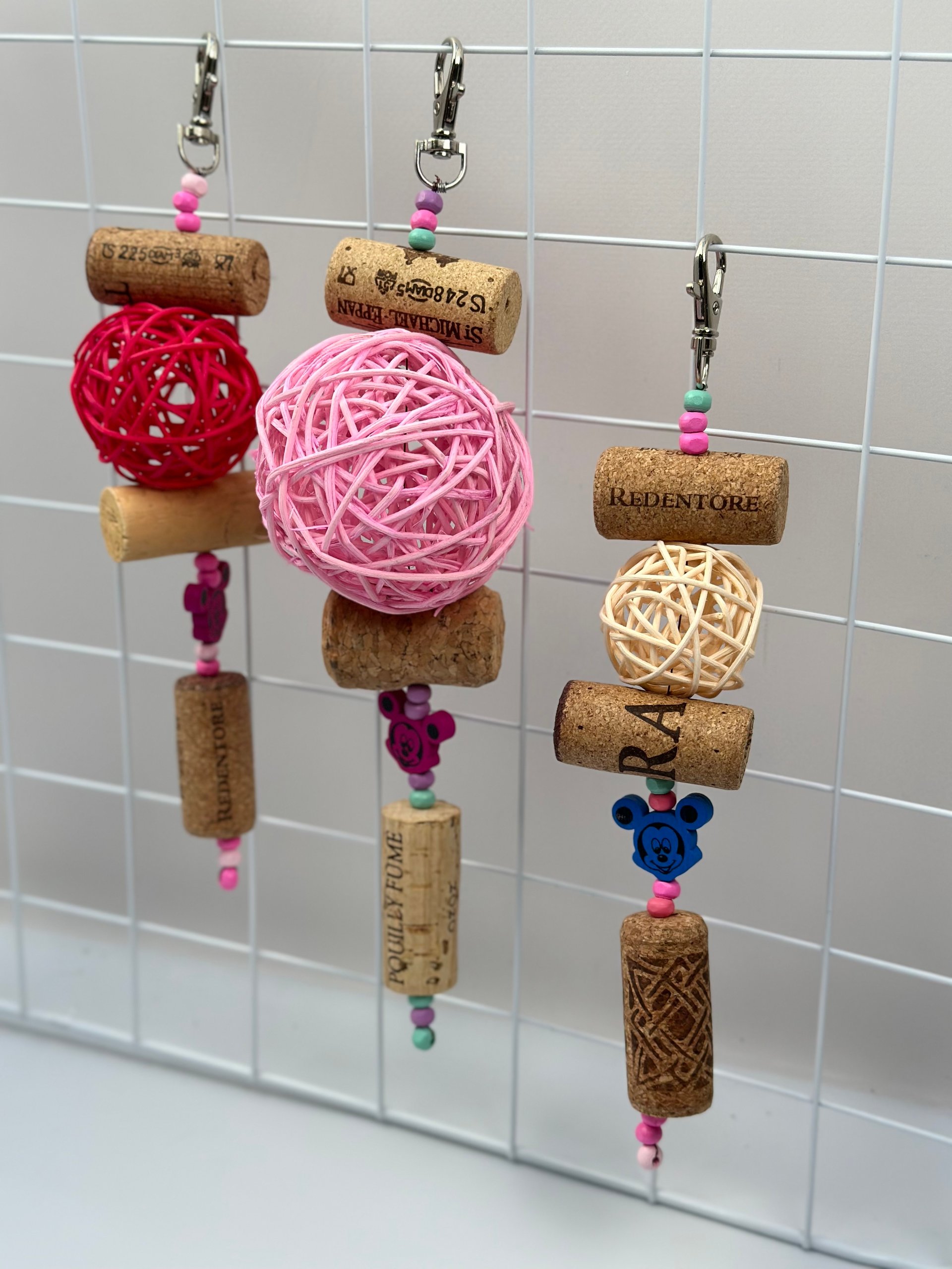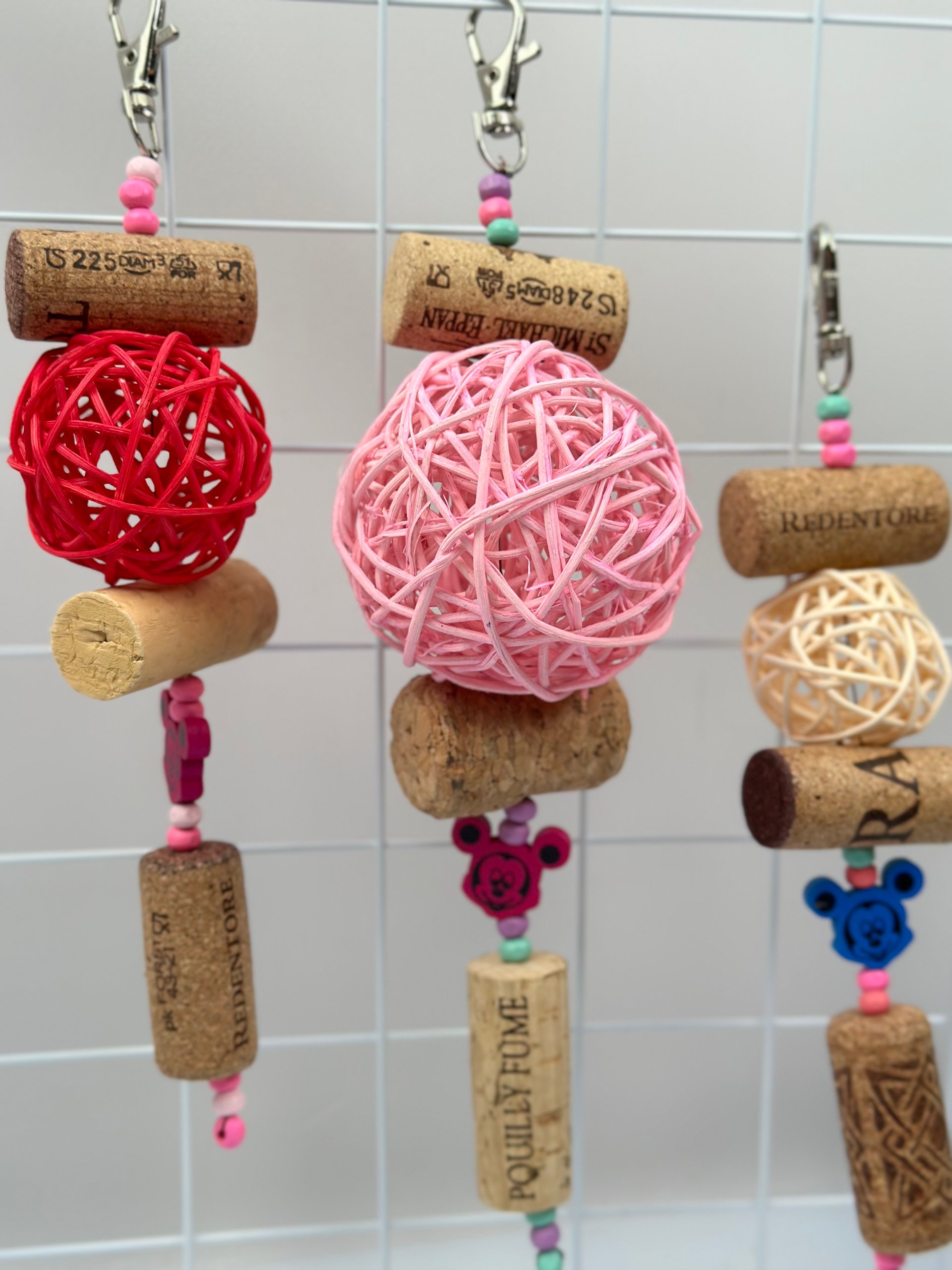 Вона виготовлена з винних корків, деревʼяних бусін та ротангової кульки, що має приємну текстуру та чудово підходить для гризіння 🦷