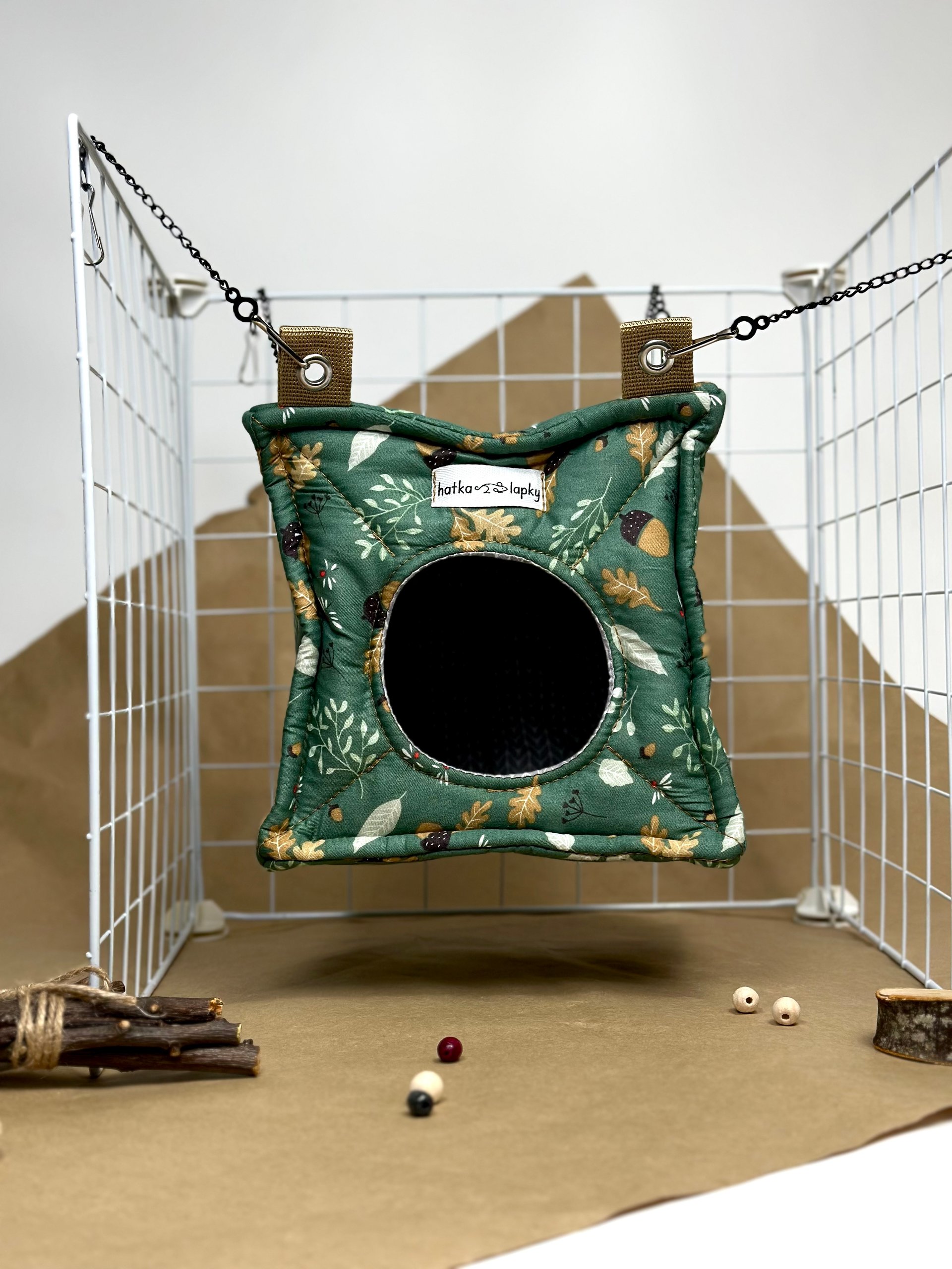Завдяки своїй формі вона створює відчуття затишку та безпеки, що так важливо для гризунят. М’які стінки забезпечують комфорт, а компактний розмір дозволяє легко розмістити хатинку в будь-якій клітці. Її можна встановити на дні або підвісити за допомогою зручних кріплень.