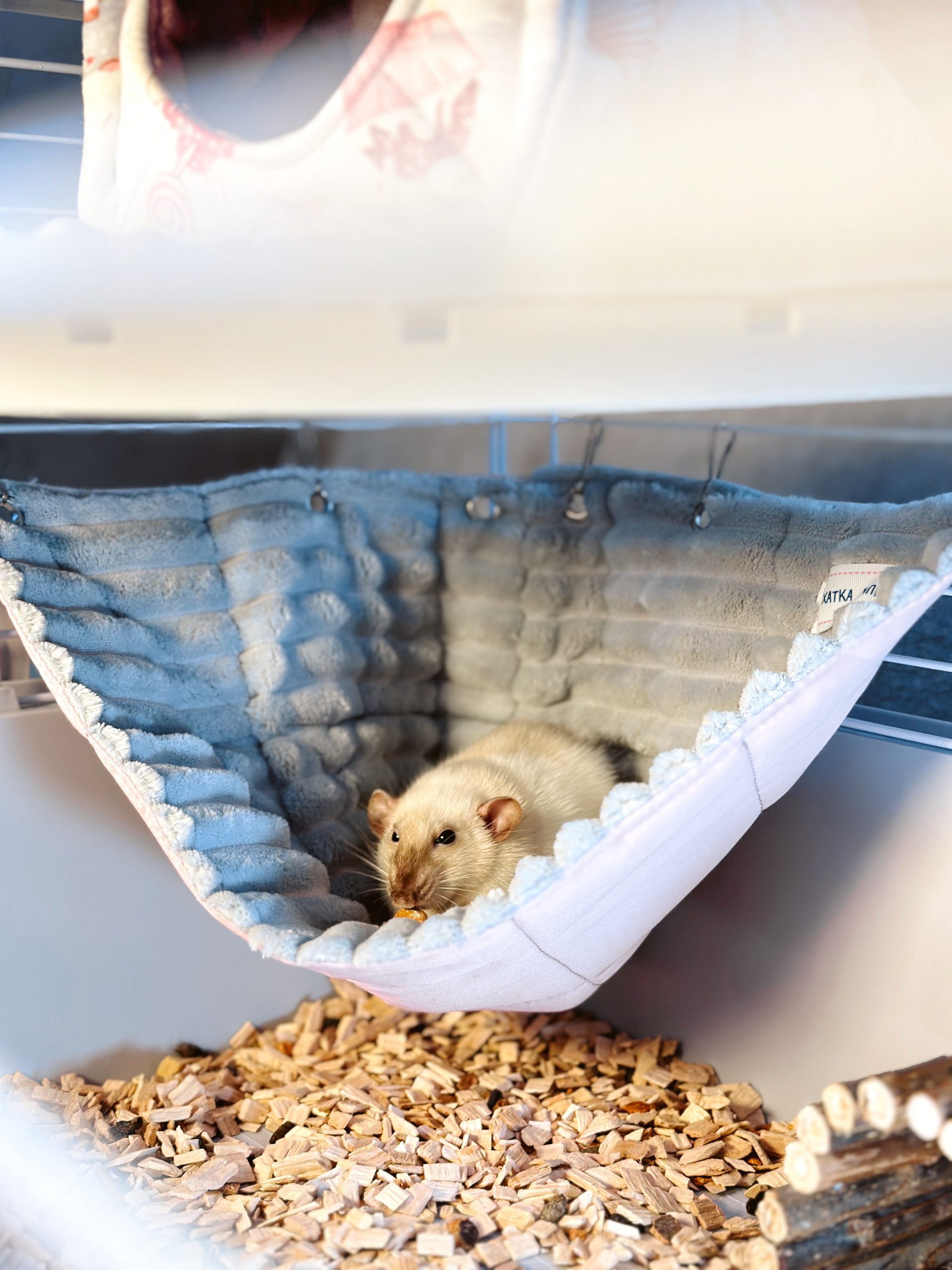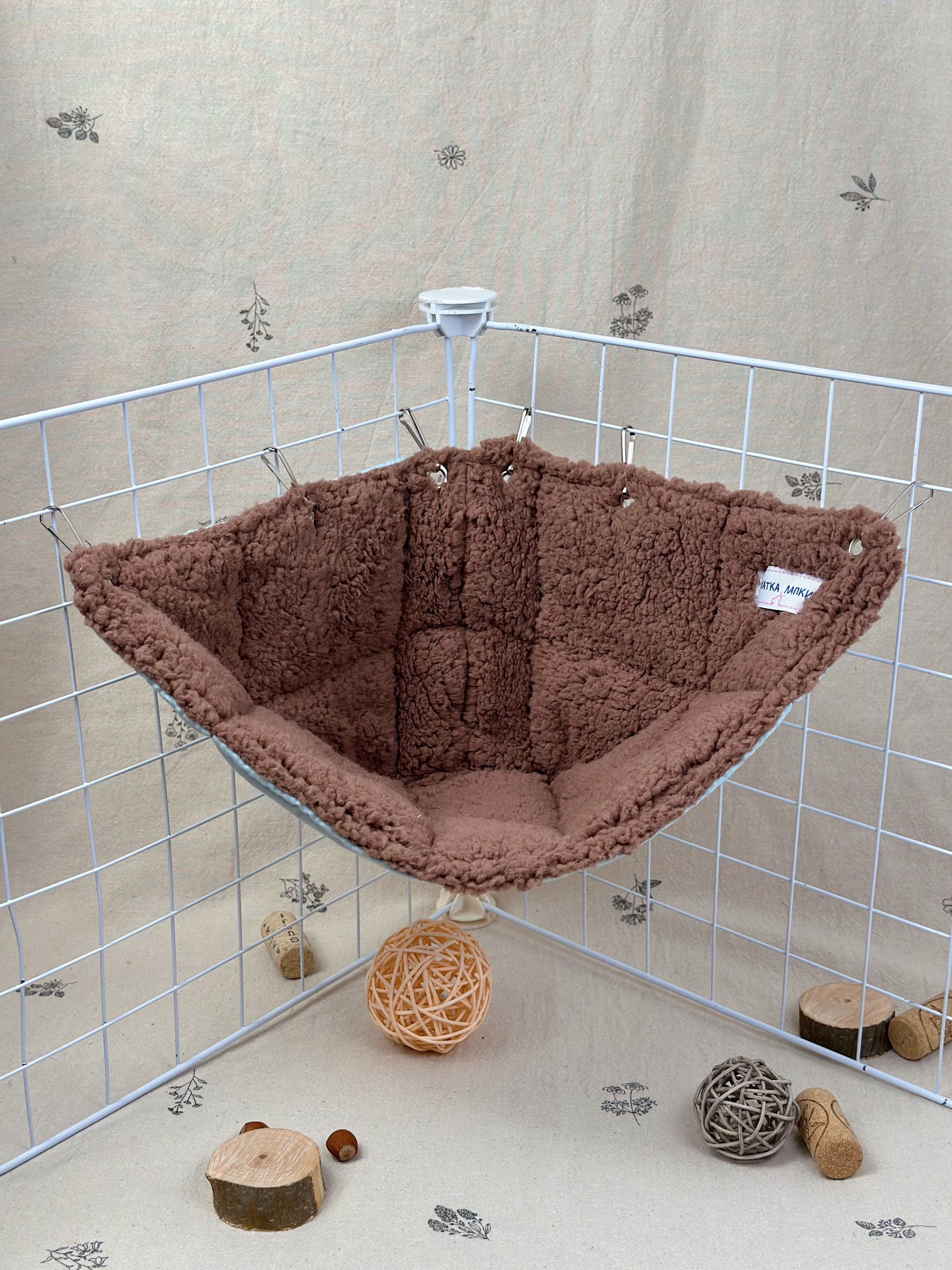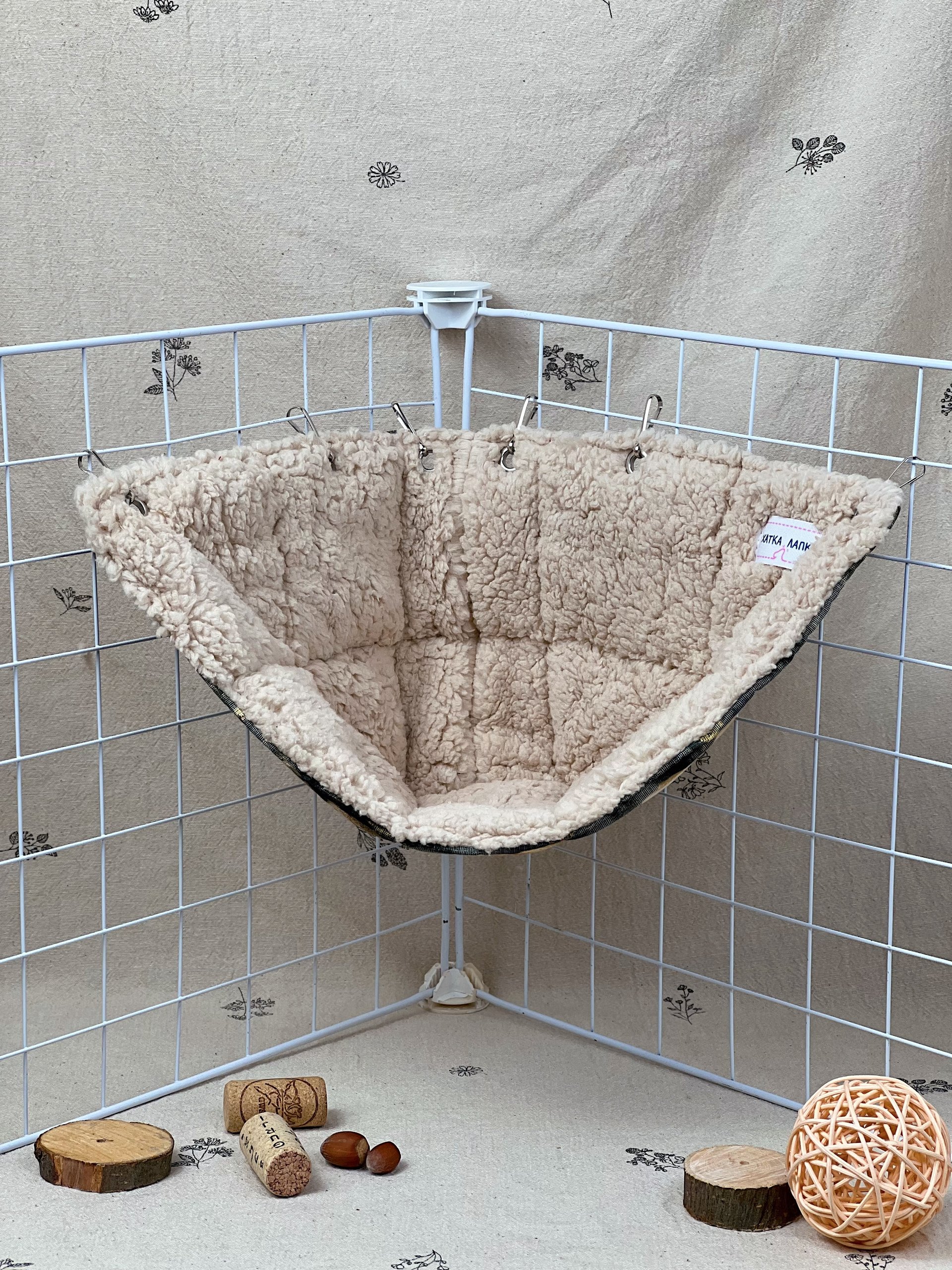 Кутовий гамачок стане чудовим доповненням до клітки, створюючи затишний куточок для відпочинку. Завдяки компактній формі він не займає багато місця, але при цьому залишається зручним і просторим для хвостиків. Пацючки можуть використовувати його як лежанку або додатковий рівень для пересування.