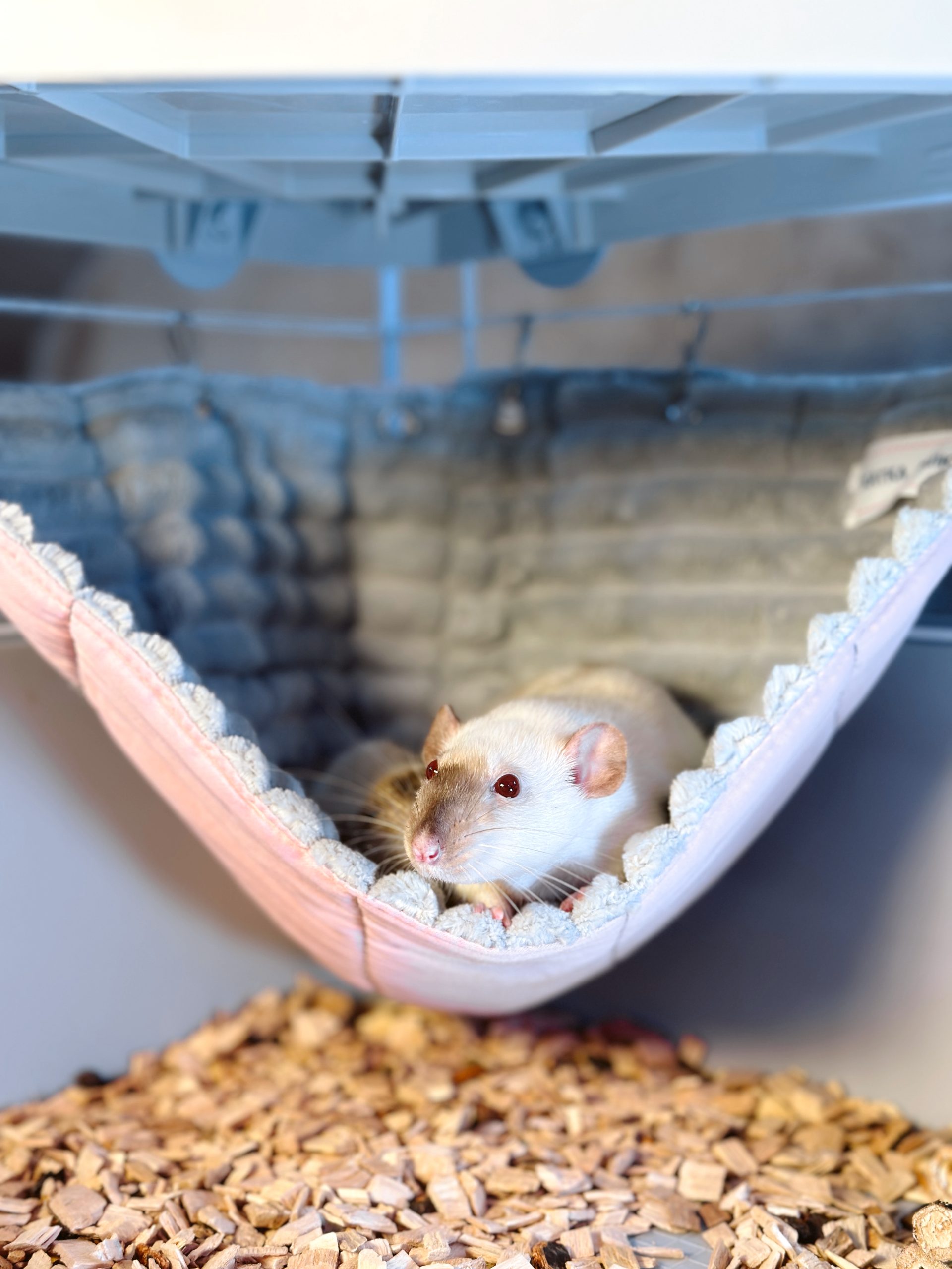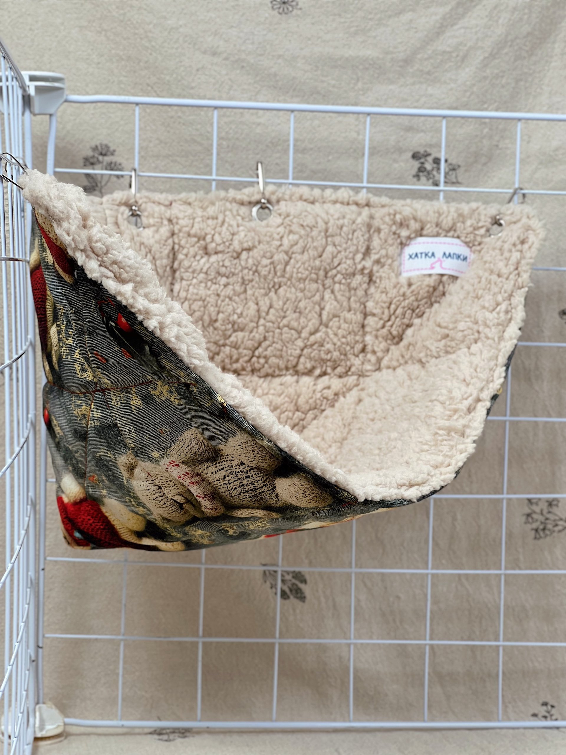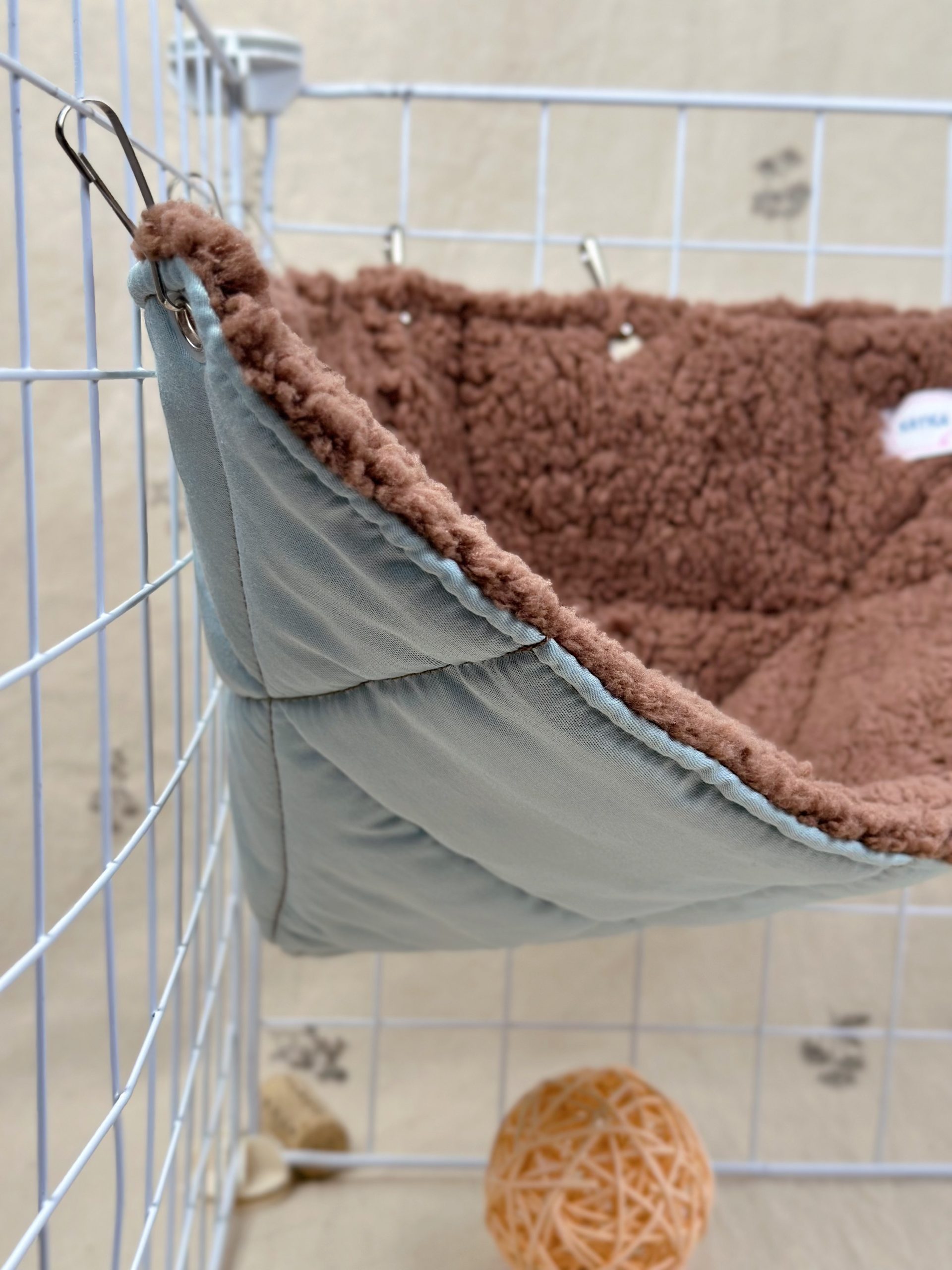 Кутовий гамачок стане чудовим доповненням до клітки, створюючи затишний куточок для відпочинку. Завдяки компактній формі він не займає багато місця, але при цьому залишається зручним і просторим для хвостиків. Пацючки можуть використовувати його як лежанку або додатковий рівень для пересування.