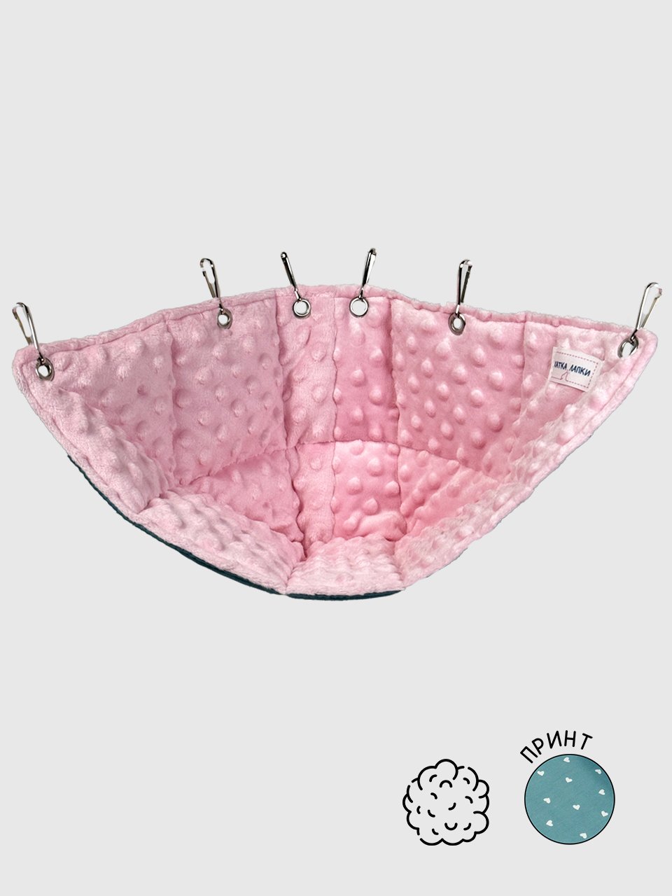 Міцні кріплення забезпечують надійну фіксацію, тому гамачок не провисає та витримує кілька хвостиків одночасно. Він виготовлений із приємних на дотик, дихаючих матеріалів, які легко прати та доглядати. А ще в ньому так зручно влаштовувати спільні обіймашки та довгі смачні перекуси!