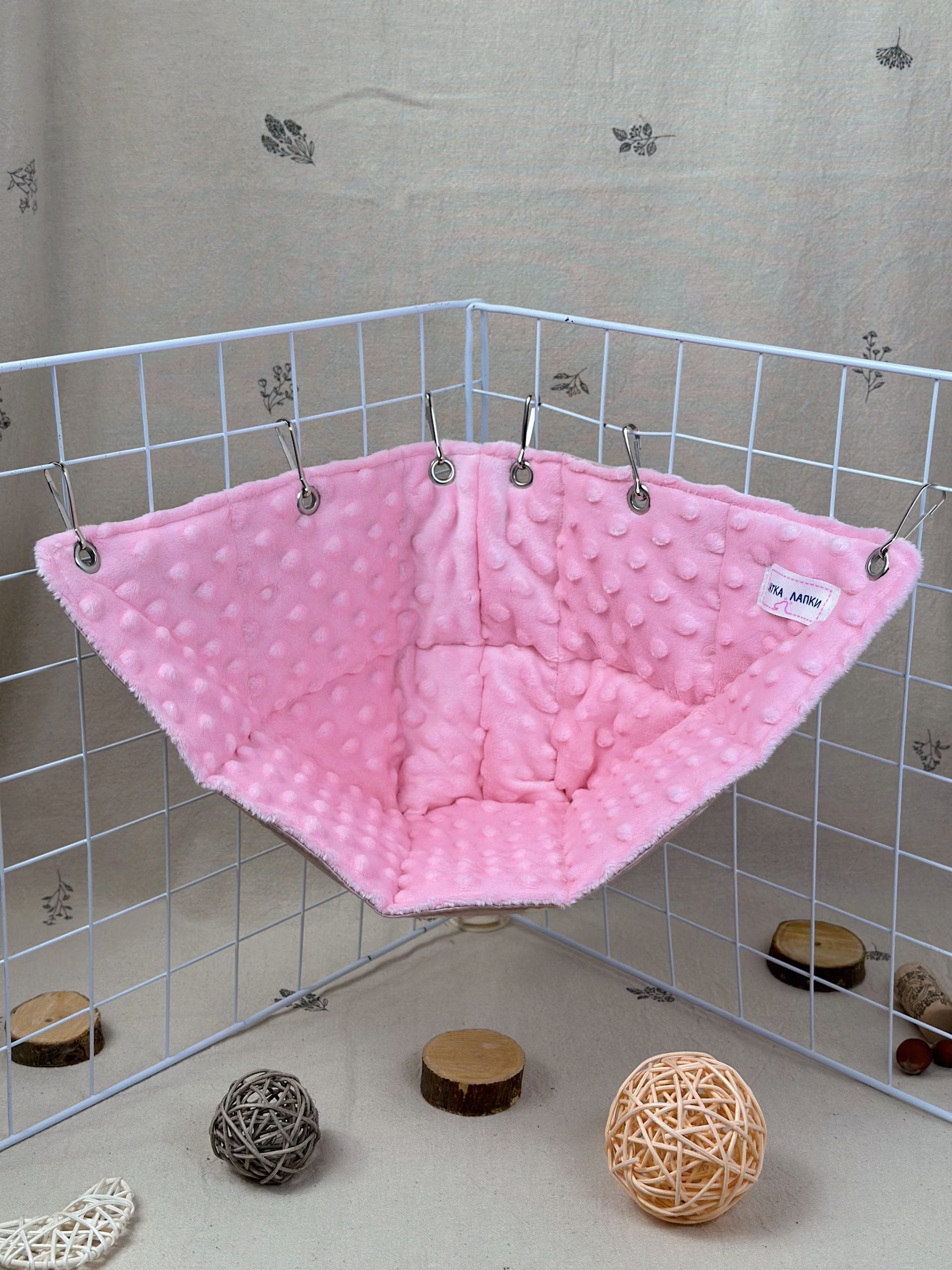 Кутовий гамачок стане чудовим доповненням до клітки, створюючи затишний куточок для відпочинку. Завдяки компактній формі він не займає багато місця, але при цьому залишається зручним і просторим для хвостиків. Пацючки можуть використовувати його як лежанку або додатковий рівень для пересування.