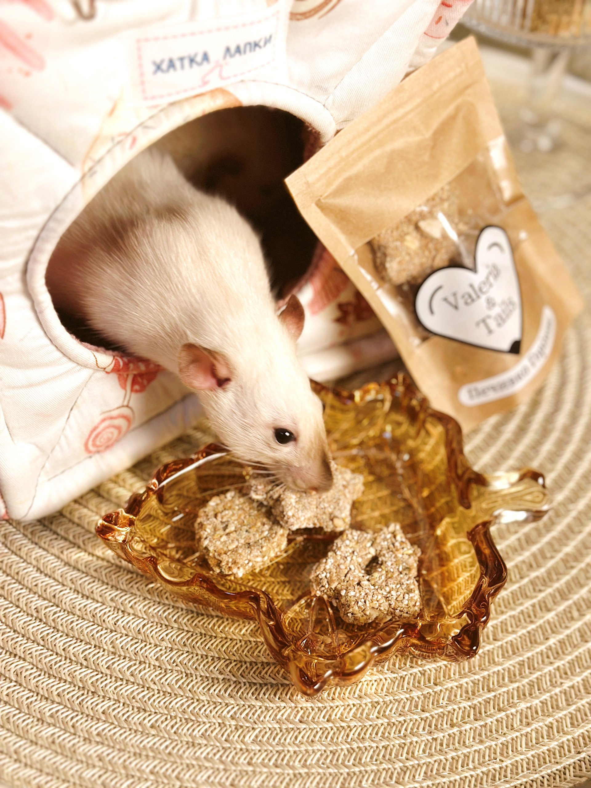 • Пацючкам із зайвою вагою: 1 раз на тиждень по одному печивку.