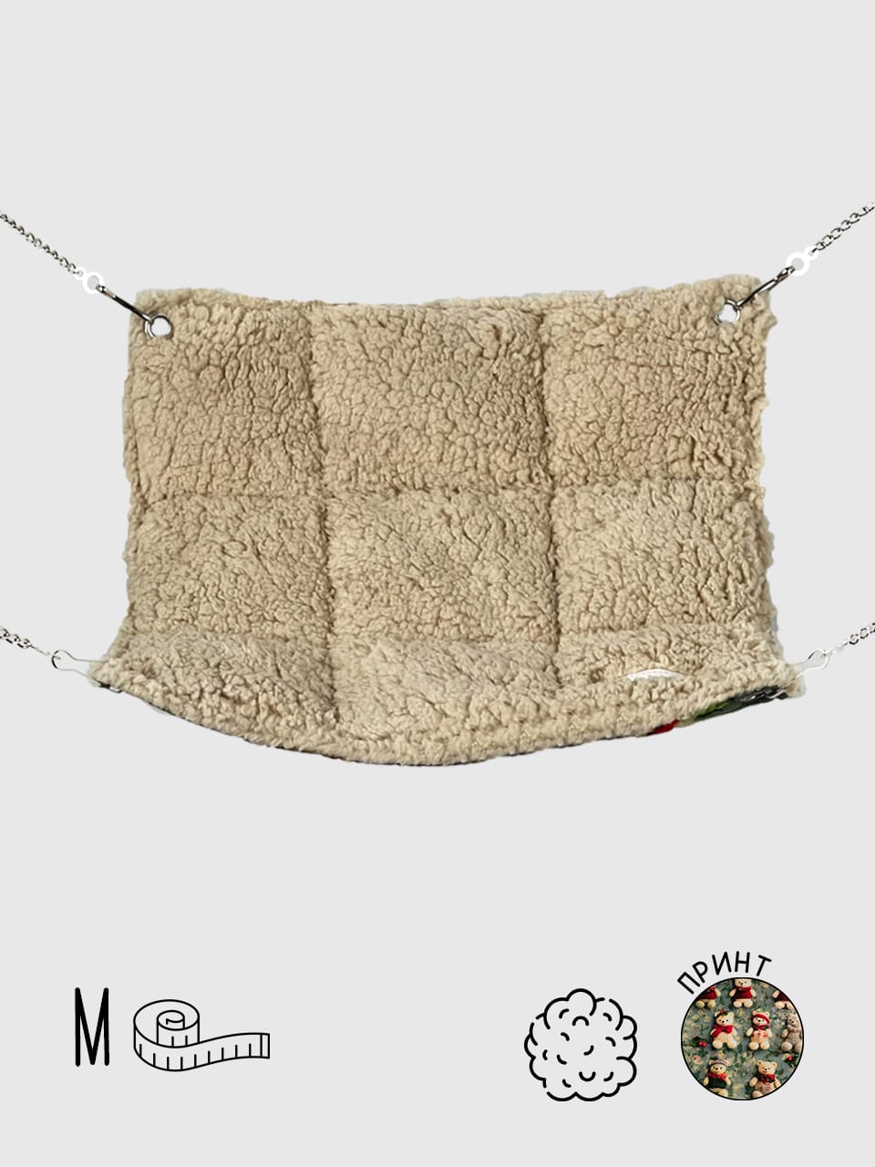 Завдяки зручним кріпленням гамачок легко фіксується у клітці та витримує кілька хвостиків одночасно. Його можна розмістити як на нижньому рівні клітки, так і вище, створюючи додатковий простір для ігор та пересування.