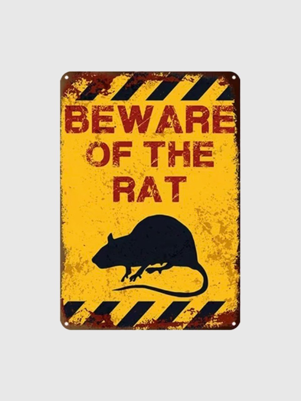 На табличці розміщено жартівливе попередження англійською мовою “Остерігайся пацюків” 🐭⚠️