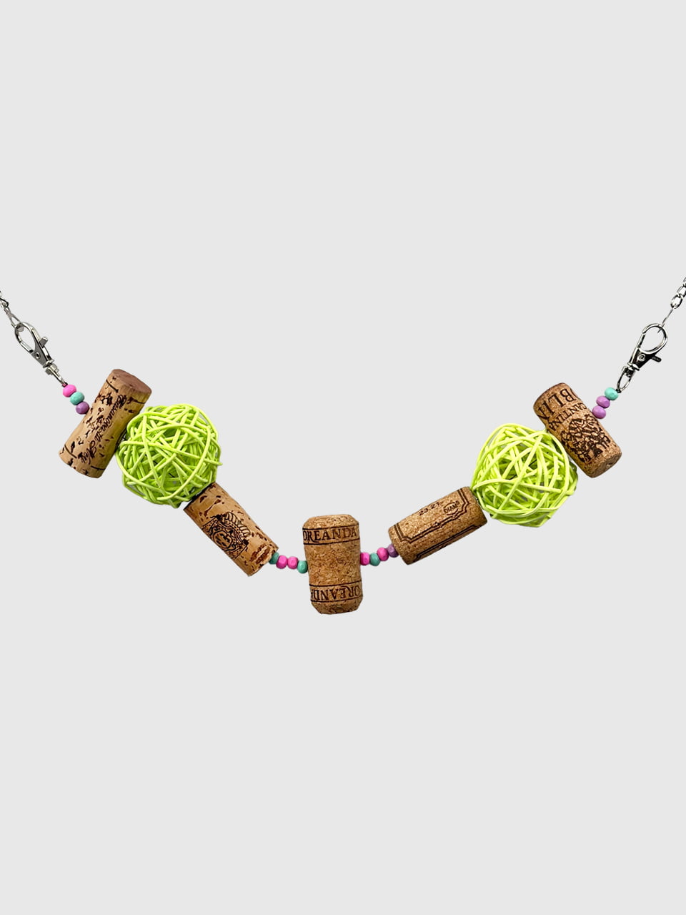 Вона виготовлена з винних корків, деревʼяних бусін та ротангової кульки, що має приємну текстуру та чудово підходить для гризіння 🦷