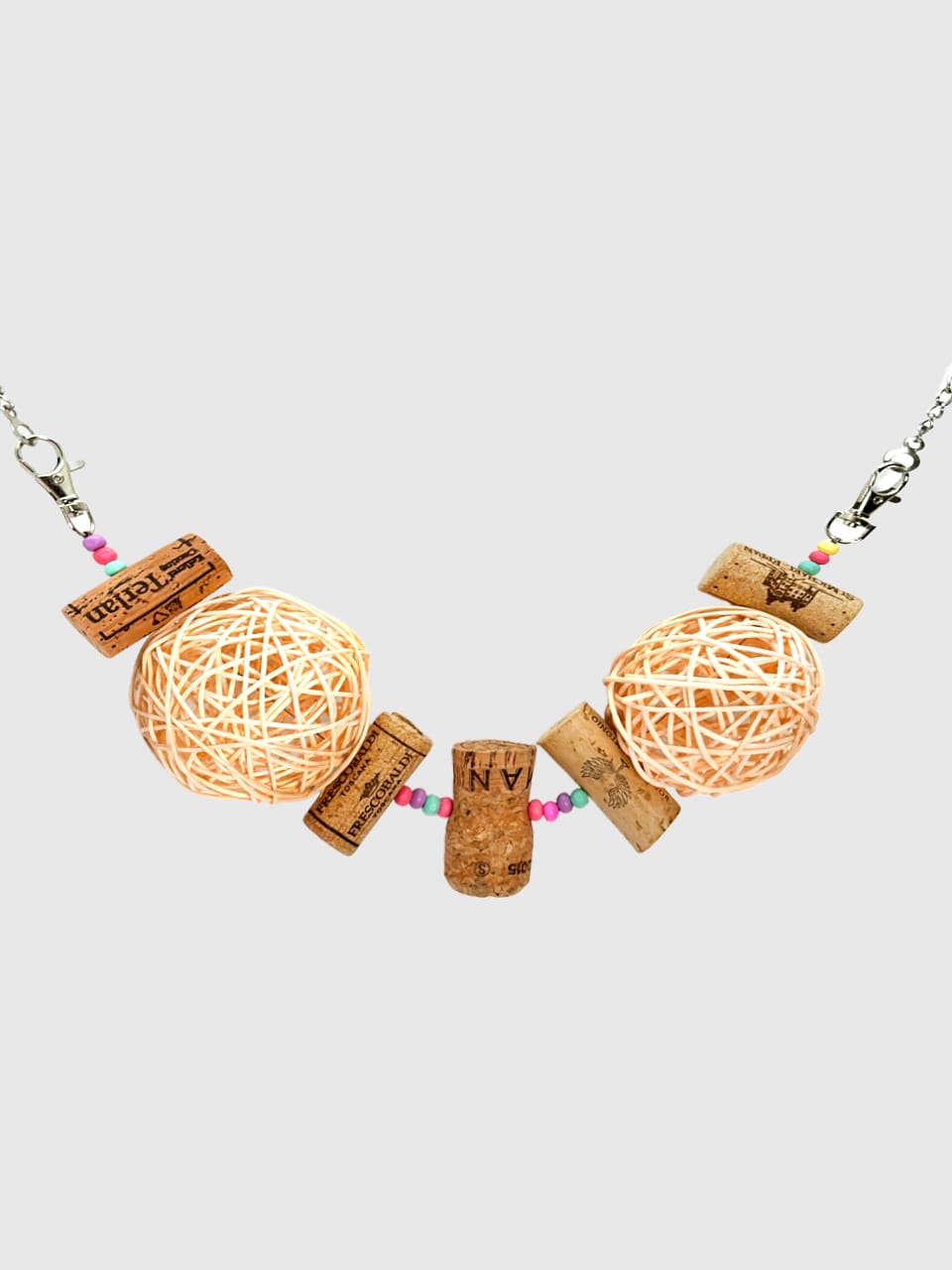Вона виготовлена з винних корків, деревʼяних бусін та ротангової кульки, що має приємну текстуру та чудово підходить для гризіння 🦷