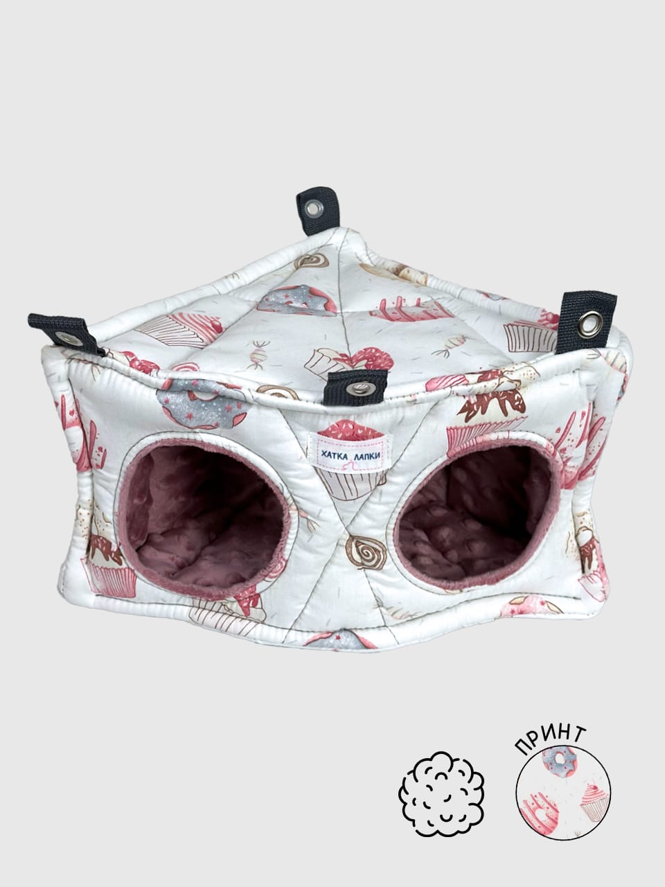 Її зручна форма дозволяє раціонально використовувати простір у клітці, створюючи затишне місце для сну та відпочинку. Два входи забезпечують додатковий комфорт, дозволяючи пацючкам легко пересуватись і почуватися в безпеці.