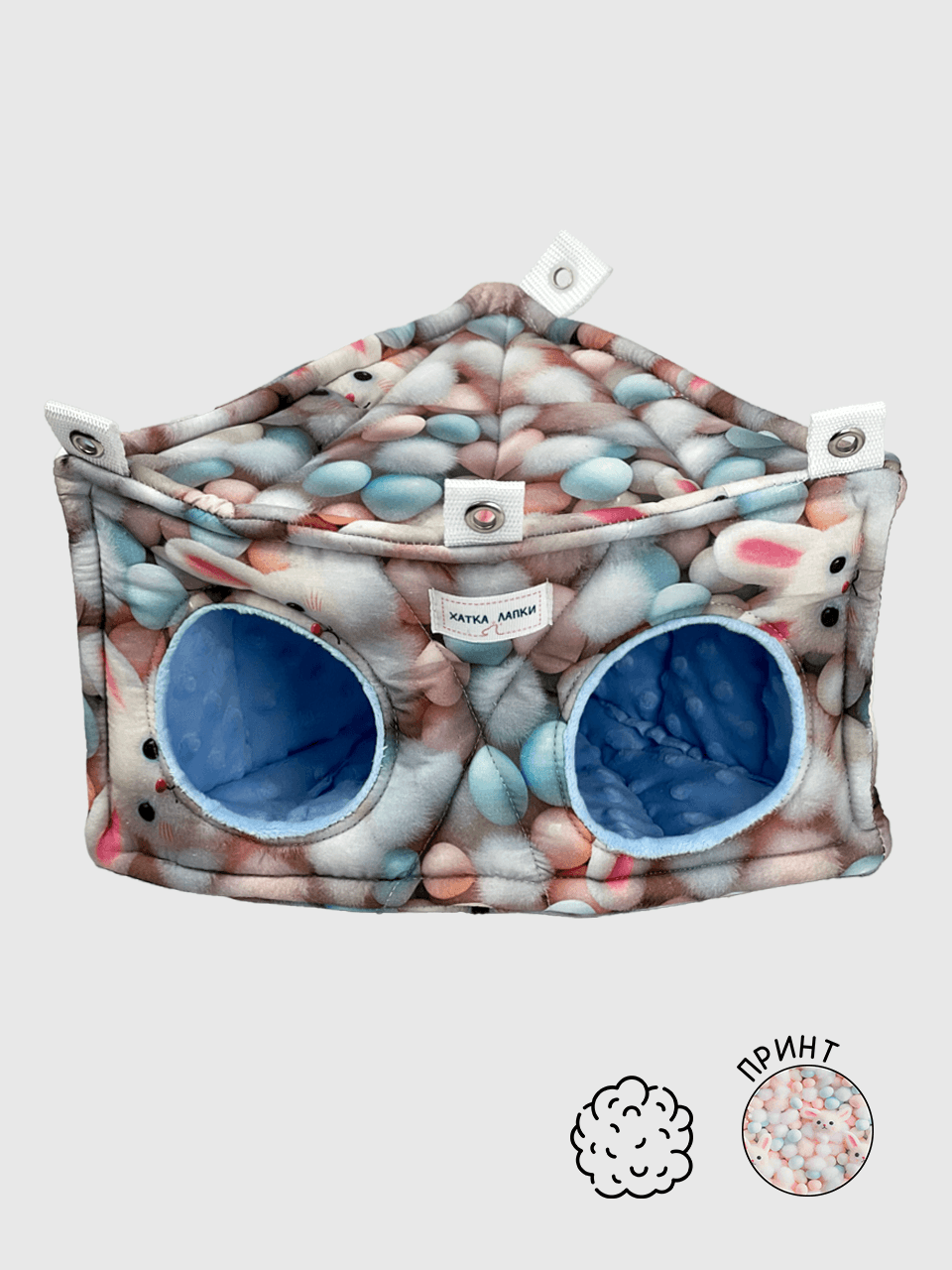Її зручна форма дозволяє раціонально використовувати простір у клітці, створюючи затишне місце для сну та відпочинку. Два входи забезпечують додатковий комфорт, дозволяючи пацючкам легко пересуватись і почуватися в безпеці.