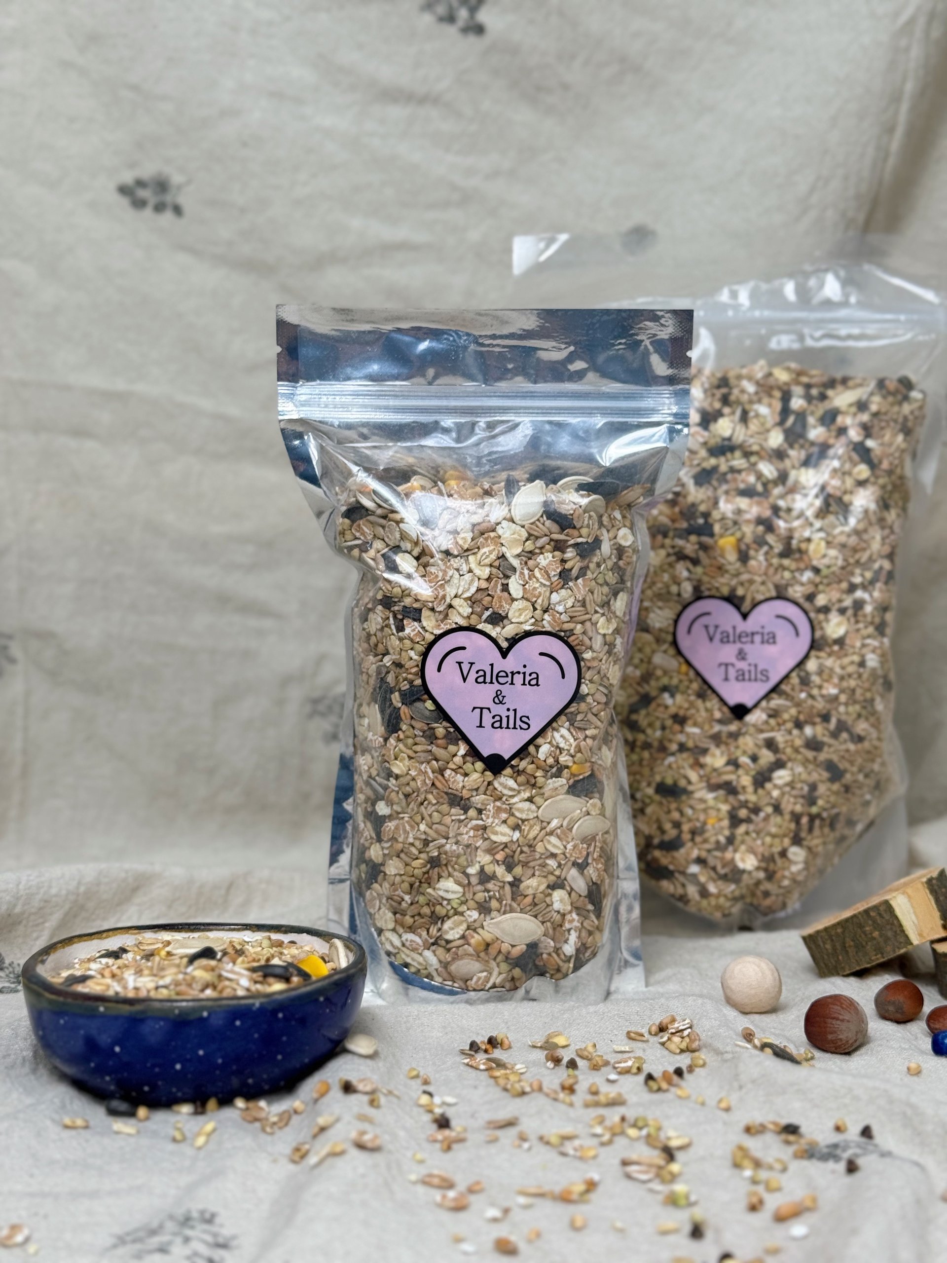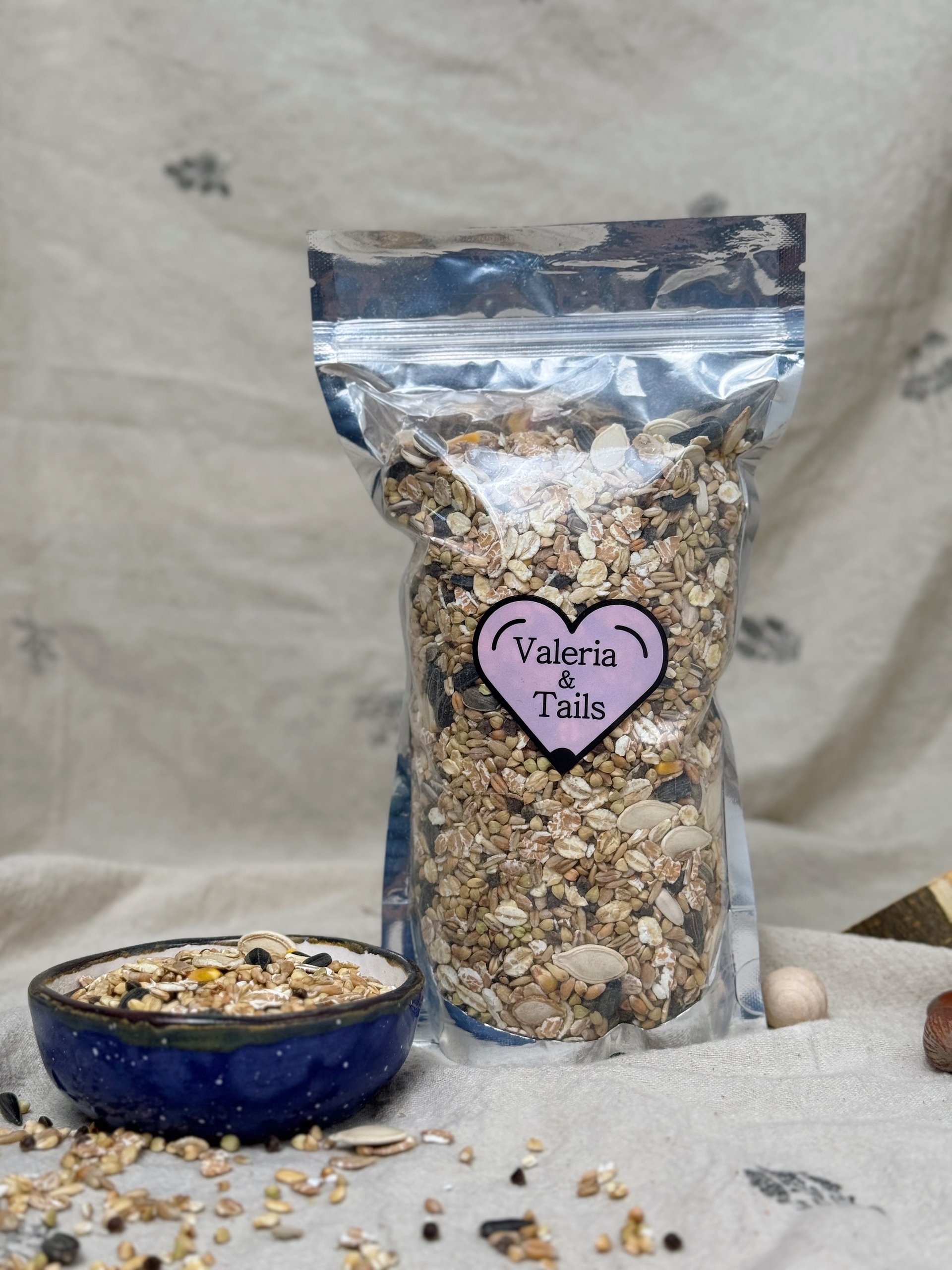 Зернова мішанка “Valeria & Tails” – саморобна мішанка від досвцідченого пацьовода створена з турботою про ваших хвостиків, аби вони могли насолоджуватися смачним та корисним кормом без зайвих домішок 💛